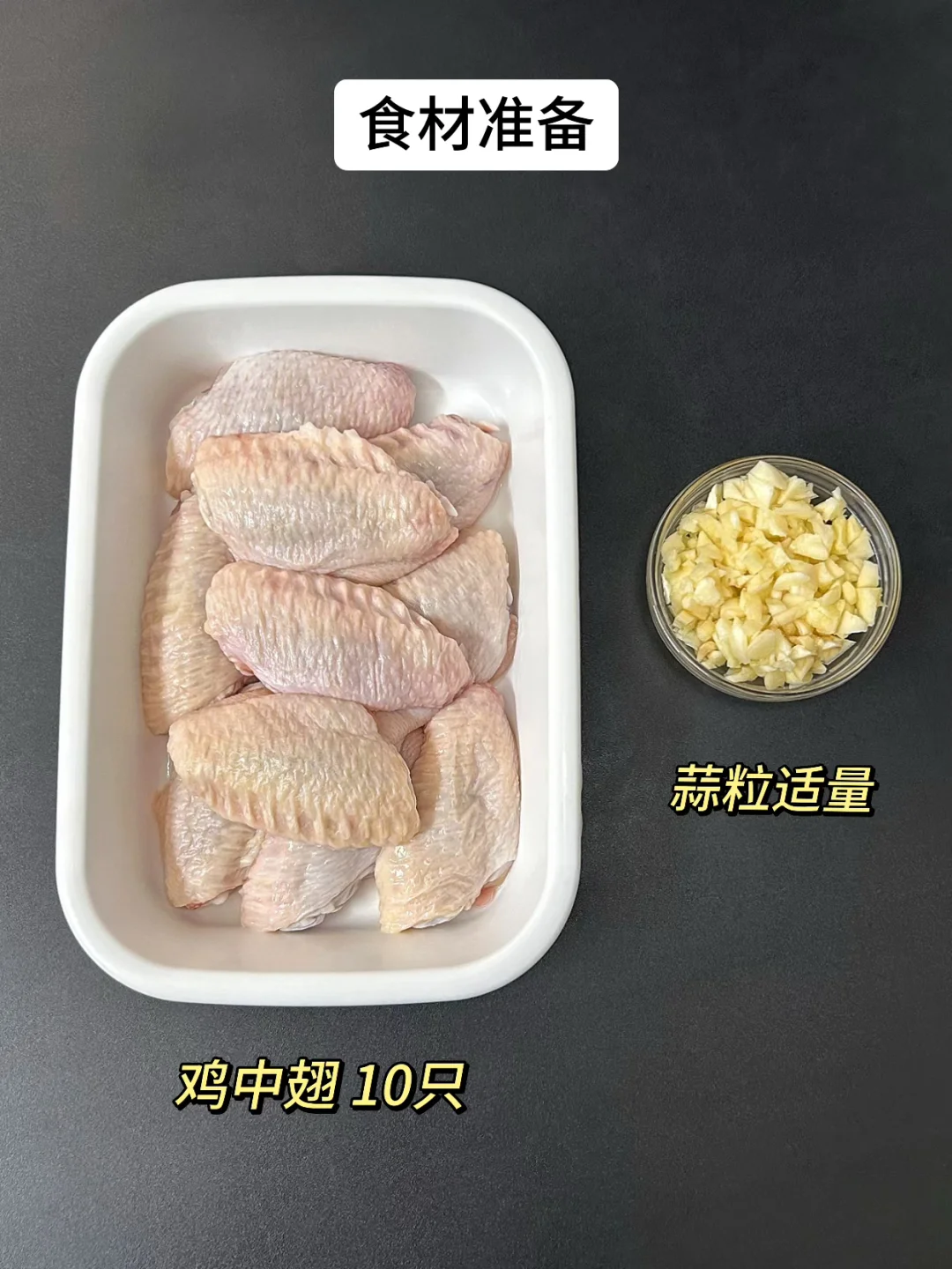 鸡中翅10只,蒜粒适量(切大粒一点,方便拣走)