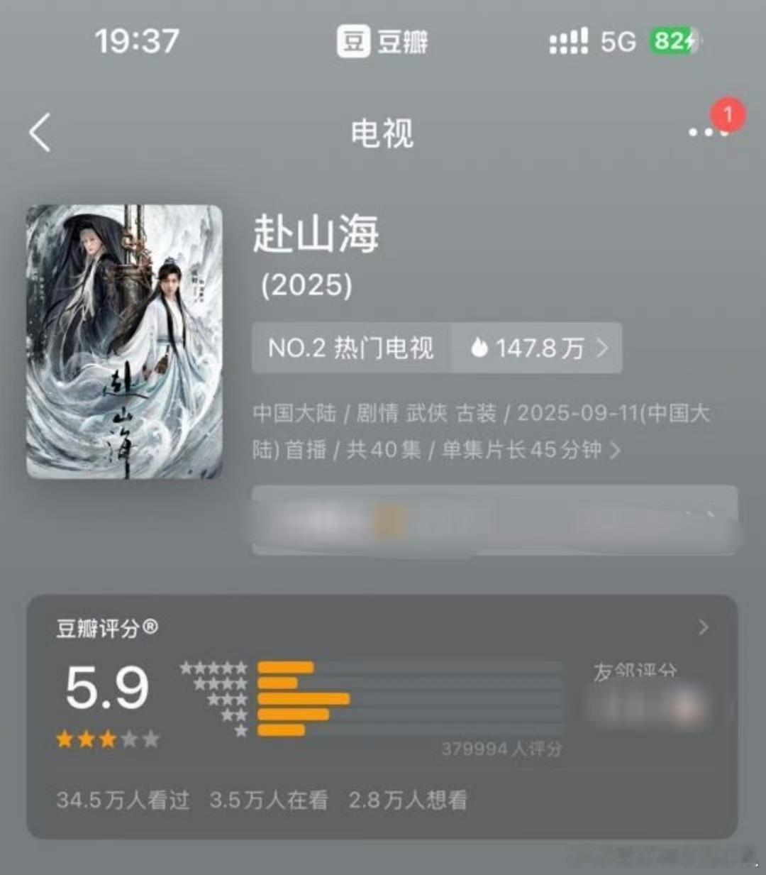 成毅赴山海豆瓣开分 5.9 分,怎么说?