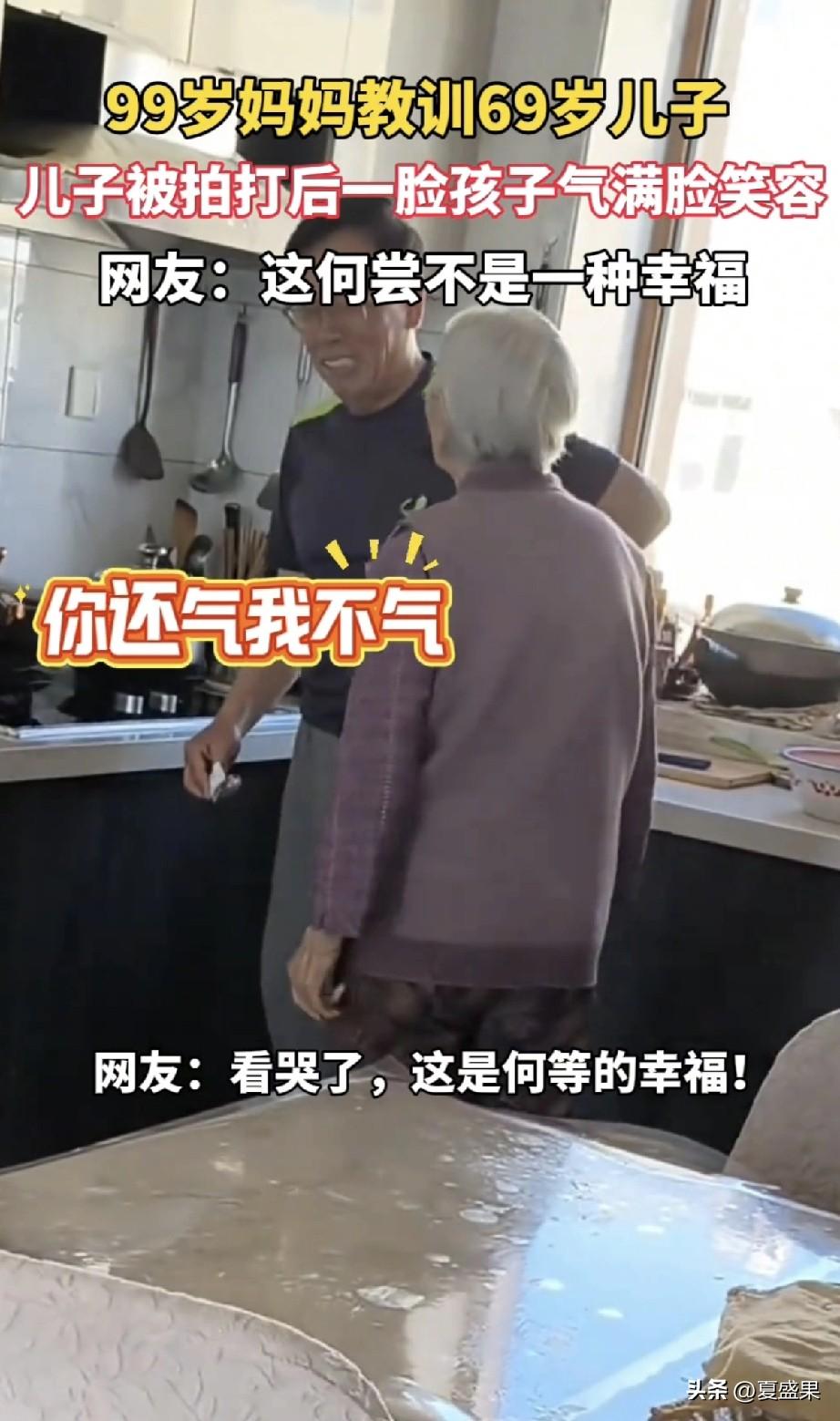 69岁的老人, 世上还有个妈叫, 就是被妈妈打, 也是幸福的。 我的妈妈, 在我