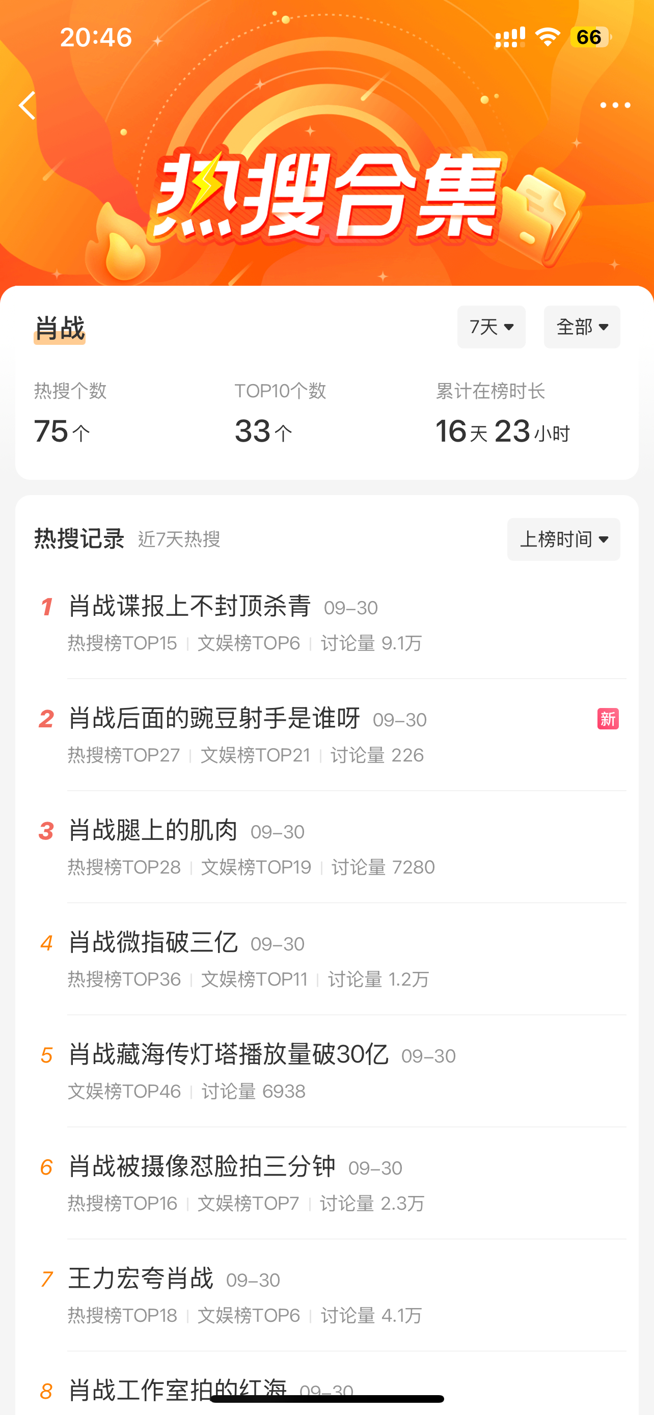肖战近7天的热搜![吃瓜][吃瓜][吃瓜]肖战整晚的音乐播放量肖战后面的豌豆