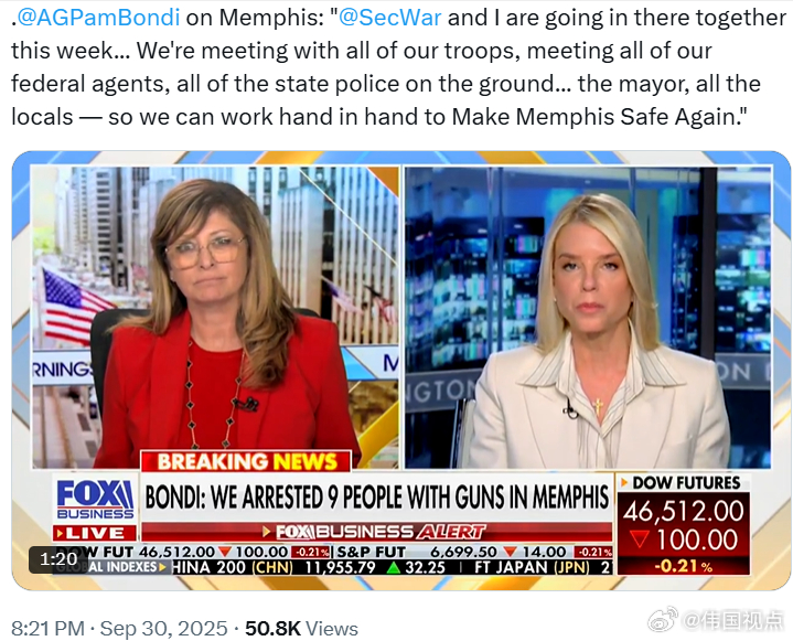 “战争部长和我本周将一起前往那里……我们将与所有部队会面,会见所有联邦特工、地面上的州警……还会与市长及所有当地官员会面——这样我们才能携手合作,让孟菲斯再次安全。”