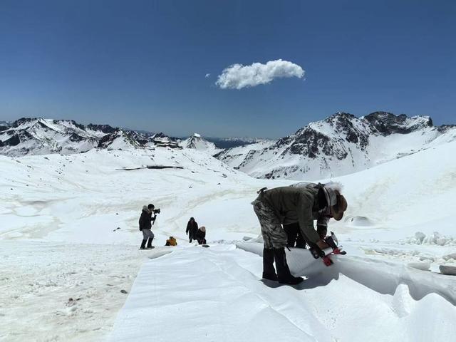 彼时的达古冰川,积雪尚未消融,科研团队克服困难,顺利在此铺设下新“被子”。
