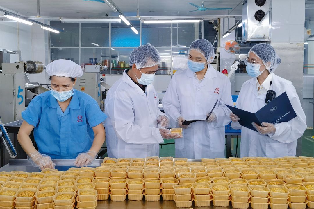 增城海关关员到月饼生产企业开展监管。黄莉姗摄