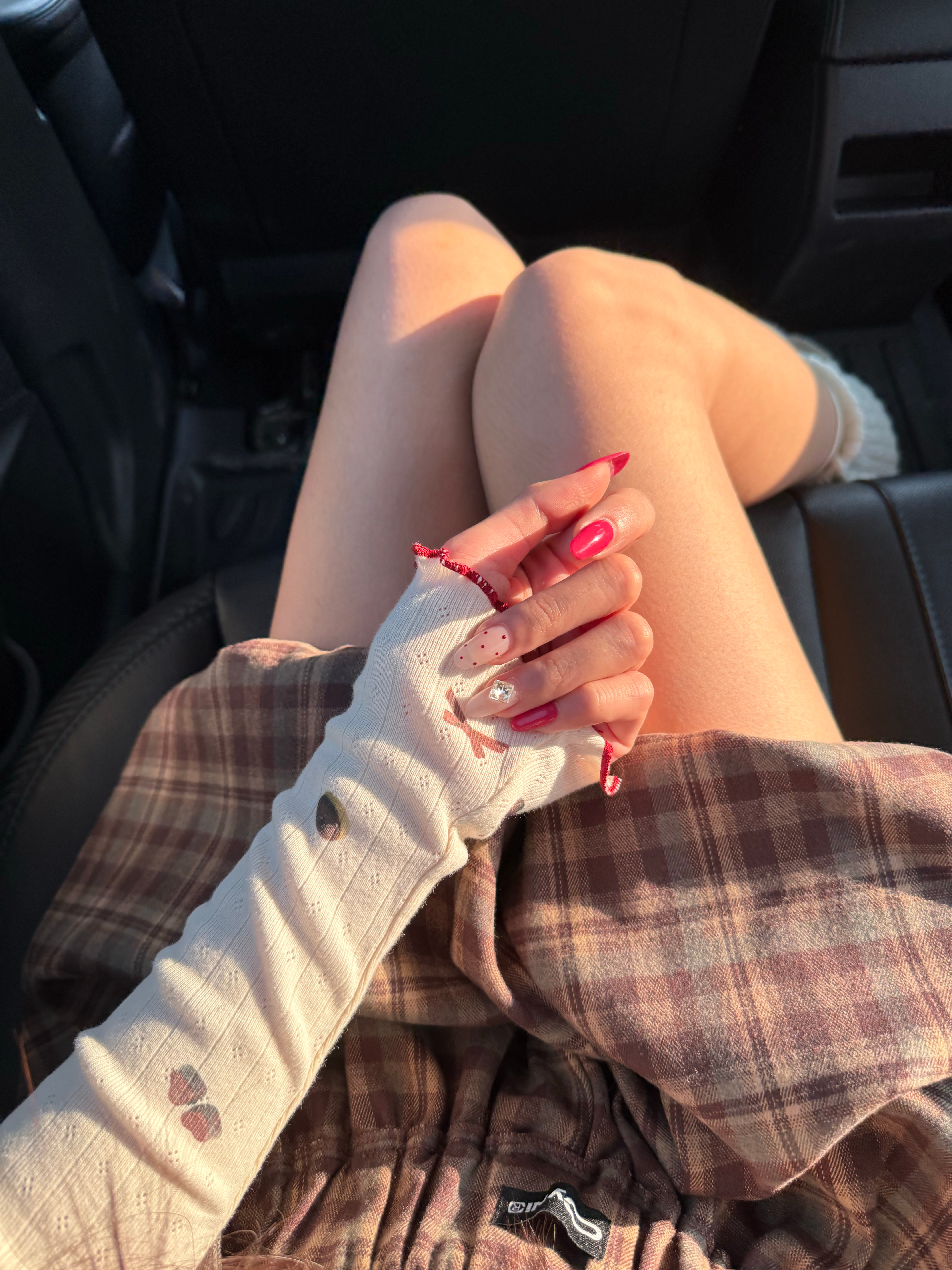 新美甲!我真的好喜欢玫红色!感觉它能带给我好运[期待]而且特别显白!!美甲