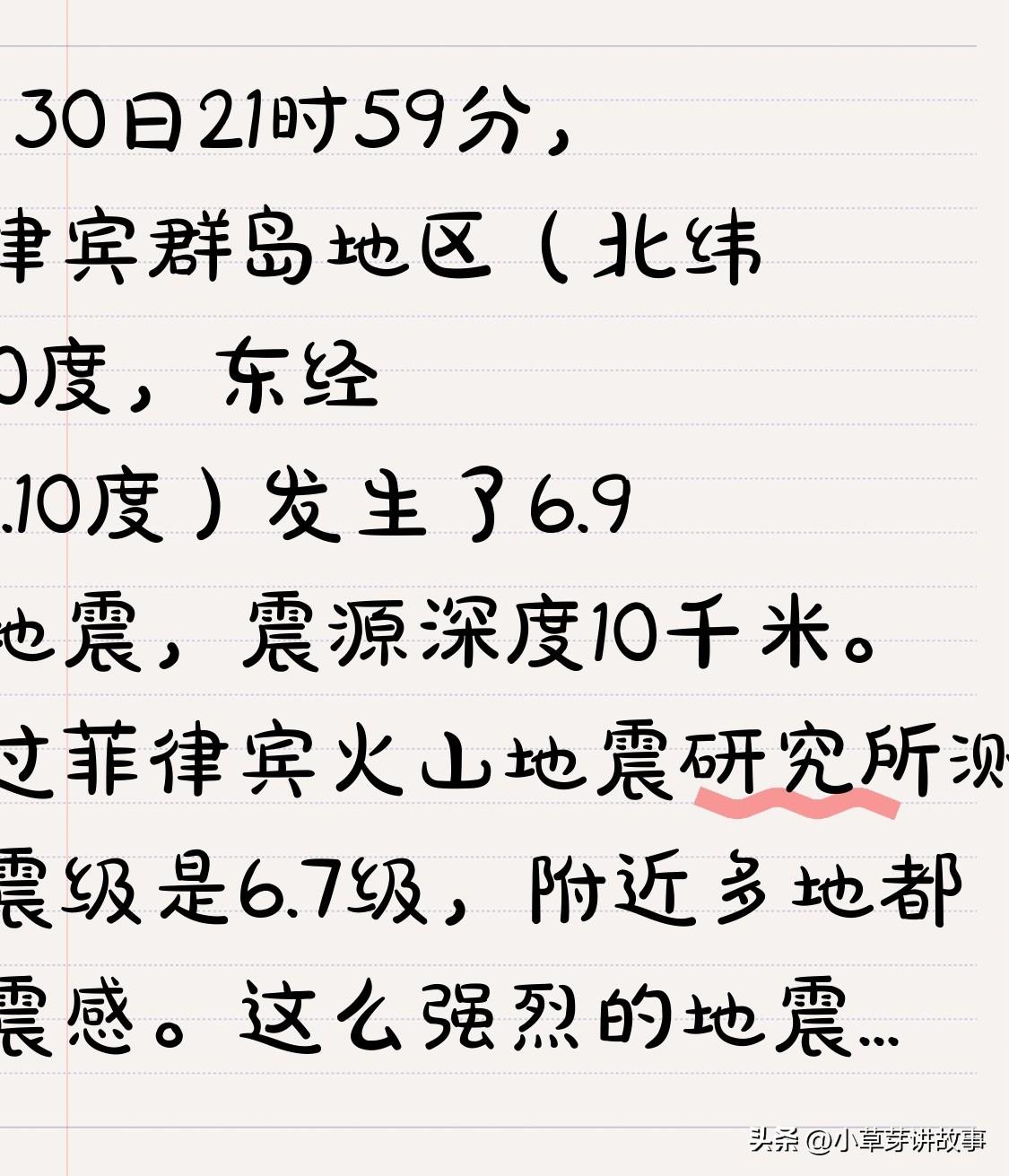惊爆!9月30日21时59分,菲律宾群岛地区(北纬11.20度,东经124.10度)发生6.9级地震,震源深度10千米。但菲律宾火山地震研究所测定为6.7级,多地有震感。 如此强震,令人胆寒。震后菲律宾发布海啸预警,更是雪上加霜。地震海啸破坏力强,威胁民众生命财产。望当地及时应对,减少损失,祝民众平安。