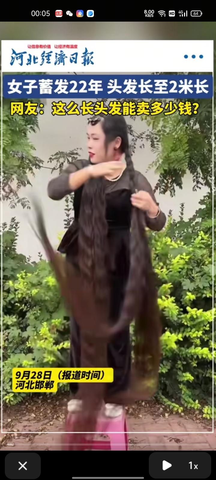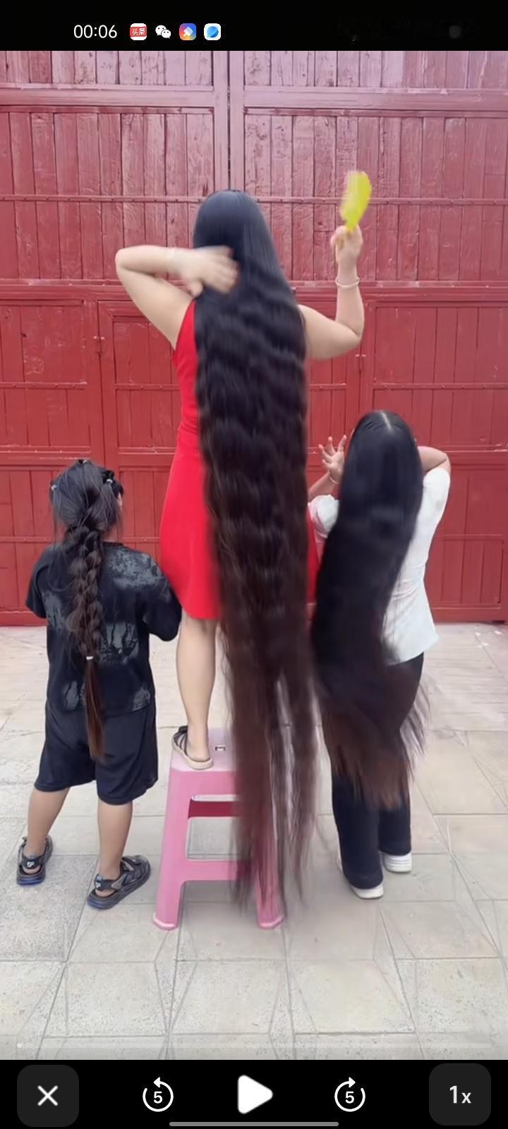 9月28日,河北邯郸。一女子蓄发22年,头发长到两米长,更震撼的是,儿子和女儿都留长发,搞不清哪个是男孩了。当事人称,自己是从15岁开始养发,如今37岁,每天梳头发至少1小时。前几年有人出过80万元,害怕卖掉头发后再涨价就没卖。
