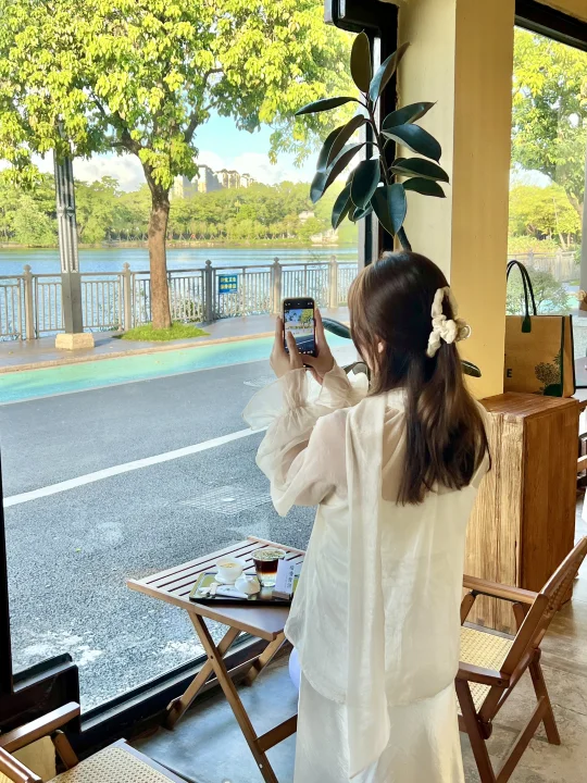 茶舍就在西湖边上,坐在窗边就能看到湖景,阳光洒进来的时候拍照特别出片!建议穿浅色系衣服来,和茶舍的氛围超配的~