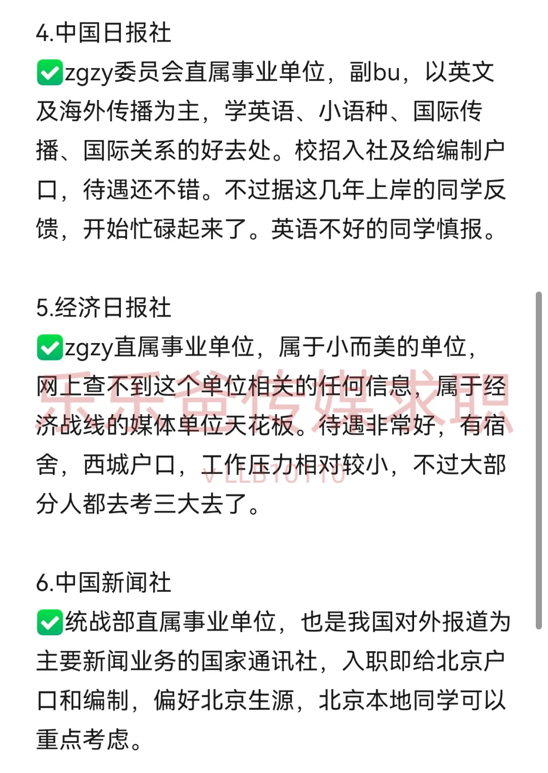 ✅26届的校招马上就要开始了,传统媒体单位一直是一个饱受争议的话题,有人说传统媒体已经进入没落期,事实确实如此,但是各行各业都有头部,腰部和底部,今天给大家盘一盘几个,从平台到待遇方面都推荐大家去的单位。 ❗️防杠,这里只说应届生的校招,事业单位解决北京户口编制,企业单位至少是集团直签或者是台聘,属于单位正式编制人员,不含劳务派遣和外包。 ✅只有校招才能去到更好的平台,同学们一定要把握好应届生的身份,机会仅此一次。
