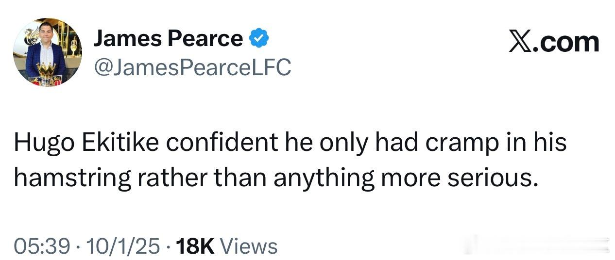 埃基蒂克很确定他只是腘绳肌位置的抽筋而不是什么严重的伤病。
