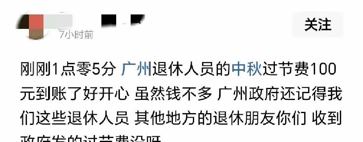 国庆中秋双节前后,一些地方的退休人员收到了两个实实在在的“涨钱”消息。过节费和养老金补发已经开始落地,对不少老人来说是好事。 第一个好消息是过节费直接到账。杭州的退休人员领到了800元,这个数目真的不少,甚至比不少上班族的红包还给力。合肥那边也有200元打到退休老人账户上,广州则是按不同标准发了100元或50元。虽然金额有高有低,但只要发钱,就体现出当地对老人的关心。你那里发过节费了吗? 第二个消息是全国多地启动养老金重新核算补发。今年刚退休、但养老金仍按去年标准核算的老人要注意啦。因为新的计发基数是下半年才公布的,所以之前少算的部分会陆续补回来。目前黑龙江、上海、浙江、湖南等18个省市都已公布基数,不少退休人员国庆前后就能收到补发金额。还没到账的也节后也会陆续安排到位。 过节收到红包,养老金还要补发一笔,双喜临门,值得高兴! 素材来自网络,侵权联系删除 退休金上调