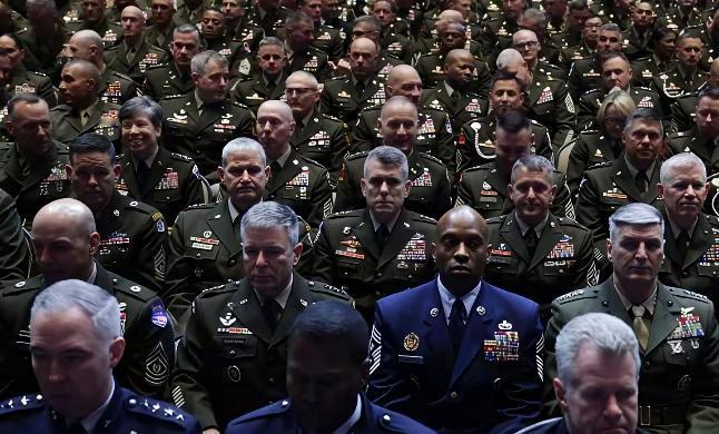 八百美国将领聆听一个退役排长的训话,不知做何感想?
