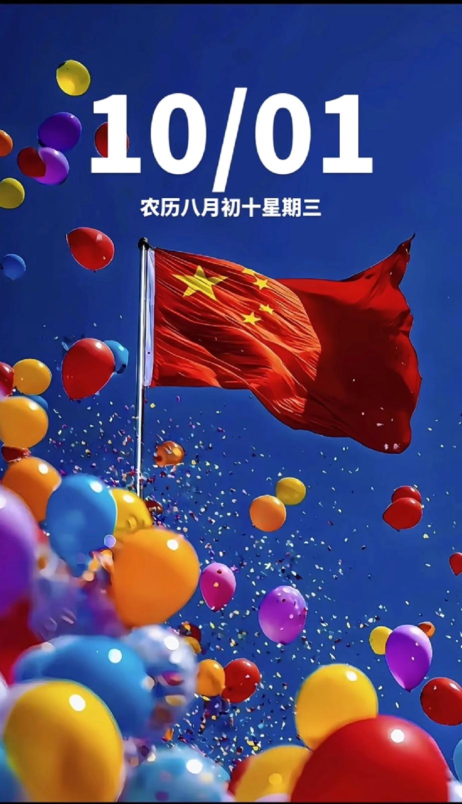 十月一日,为祖国庆生! 窗外飘扬的国旗、街头热闹的氛围,一早就把国庆的仪式感拉满了。看着朋友圈里大家晒的家乡街景、出游路上的朝阳,或是一家人围坐的团圆饭,突然觉得“国泰民安”从来不是一句口号——是每个人脸上的笑意,是出行时的安心,是平凡日子里稳稳的幸福。 这一年,不管是走过的路、完成的事,还是身边不变的陪伴,都让人更懂“祖国”二字的分量。它护着我们的烟火日常,也托着我们的小小梦想。 今天,只想好好道一句:生日快乐,我的国!愿山河锦绣,岁岁常安,也愿我们都能在新的时光里,继续和祖国一起,奔赴更好的未来!