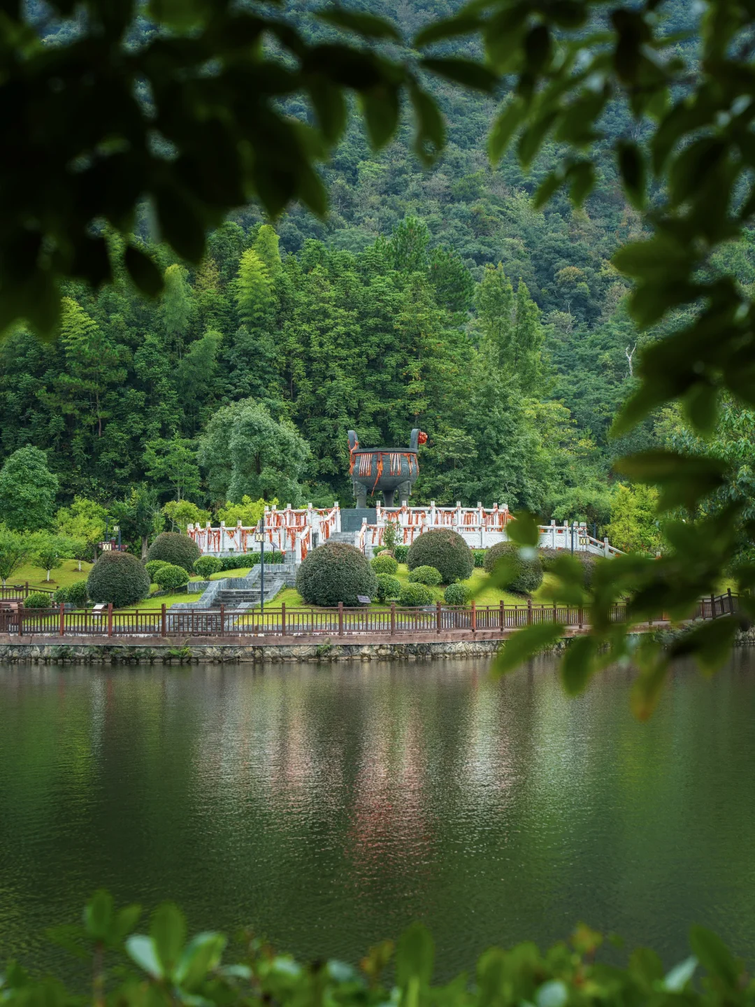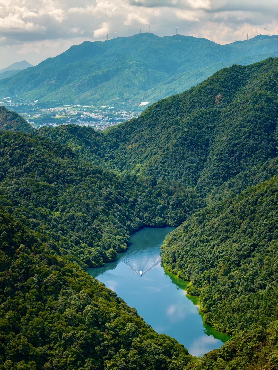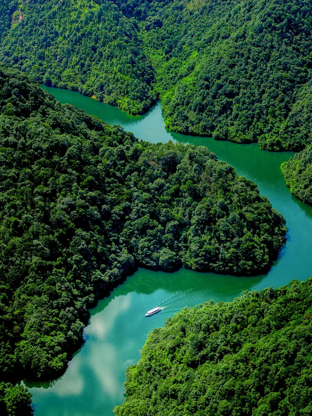 如同翡翠一般的湖泊镶嵌在群山之中,乘坐游船穿梭在群山之中,风景绝美