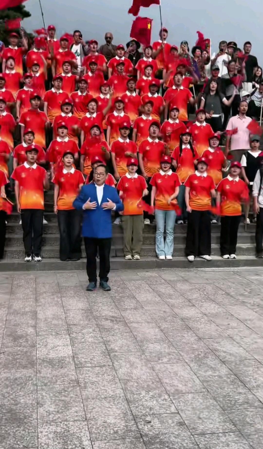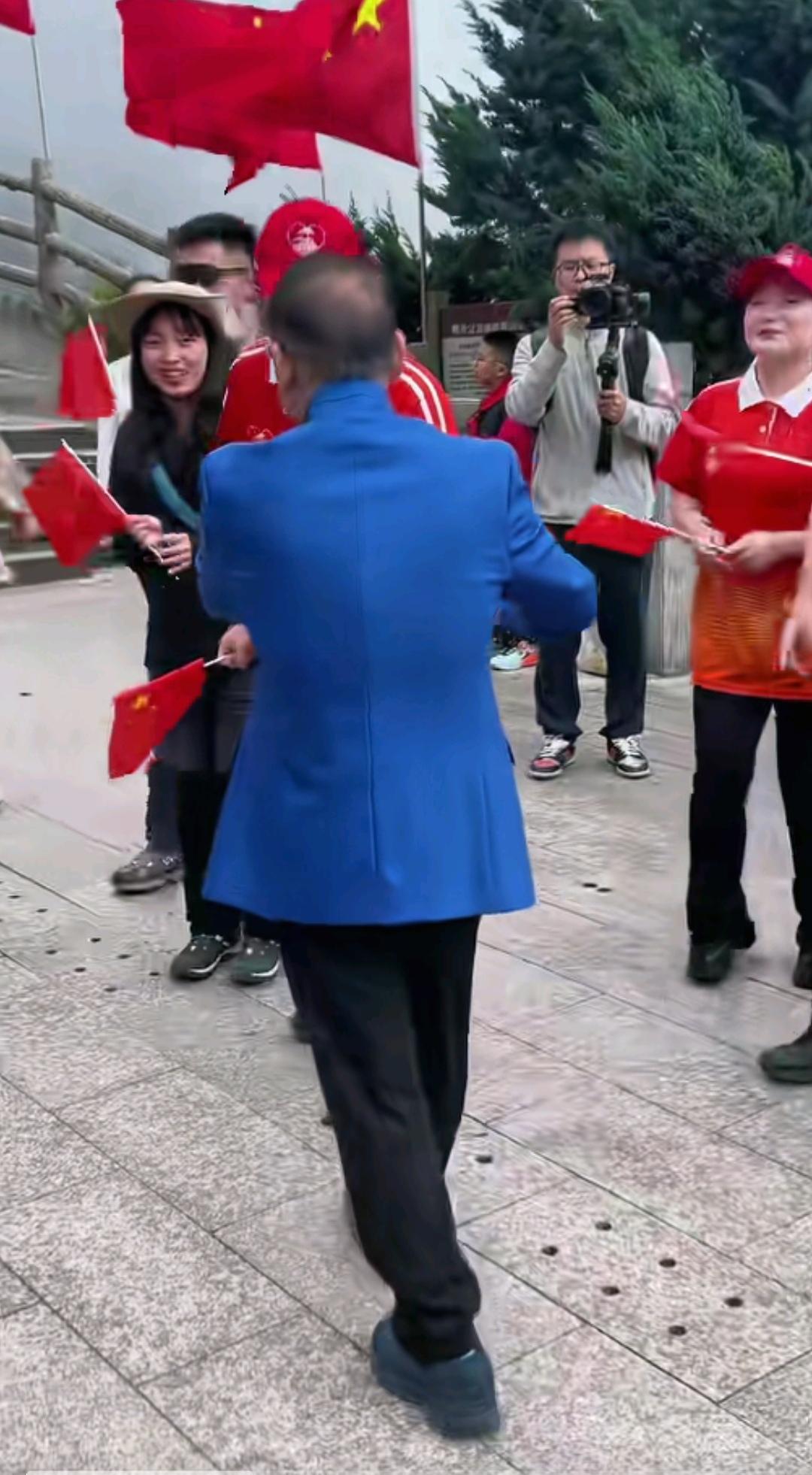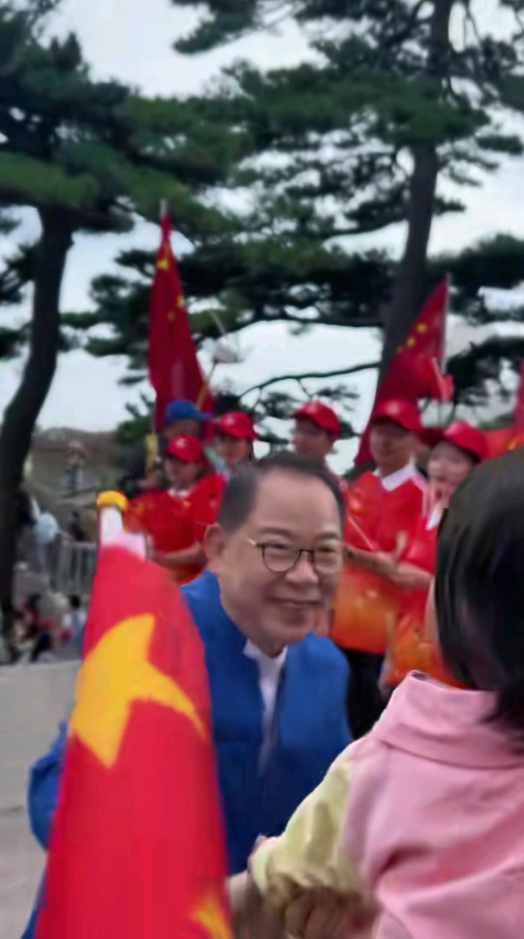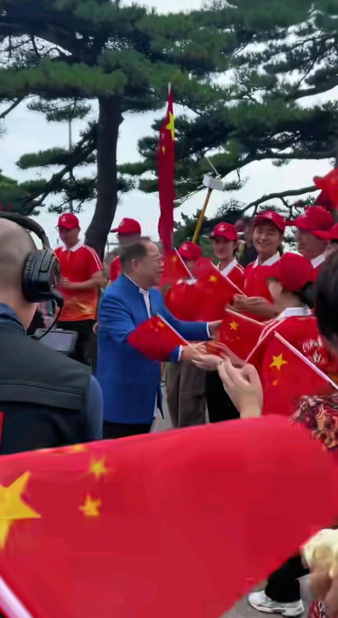 国庆到了,举国欢庆。9月30日,著名歌手张明敏先生现身安徽黄山,与游客和志愿者们一起唱响《我的中国心》,现场振奋人心。 张明敏也是粉丝们公认的爱国人士,当年为国家做了不少贡献。他当天来到黄山的迎客松旁边,穿着立领的蓝色上衣,与穿着红色短袖、拿着小红旗的志愿者们打招呼。 随后志愿者们排列整齐,张明敏和大家一起高声歌唱,黄山迎客松旁边变成了小红旗闪耀,歌声振奋人心的地方。