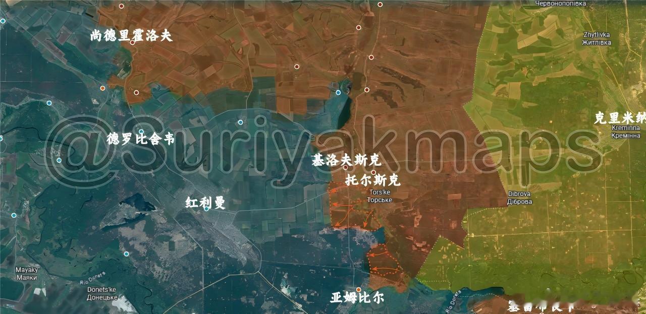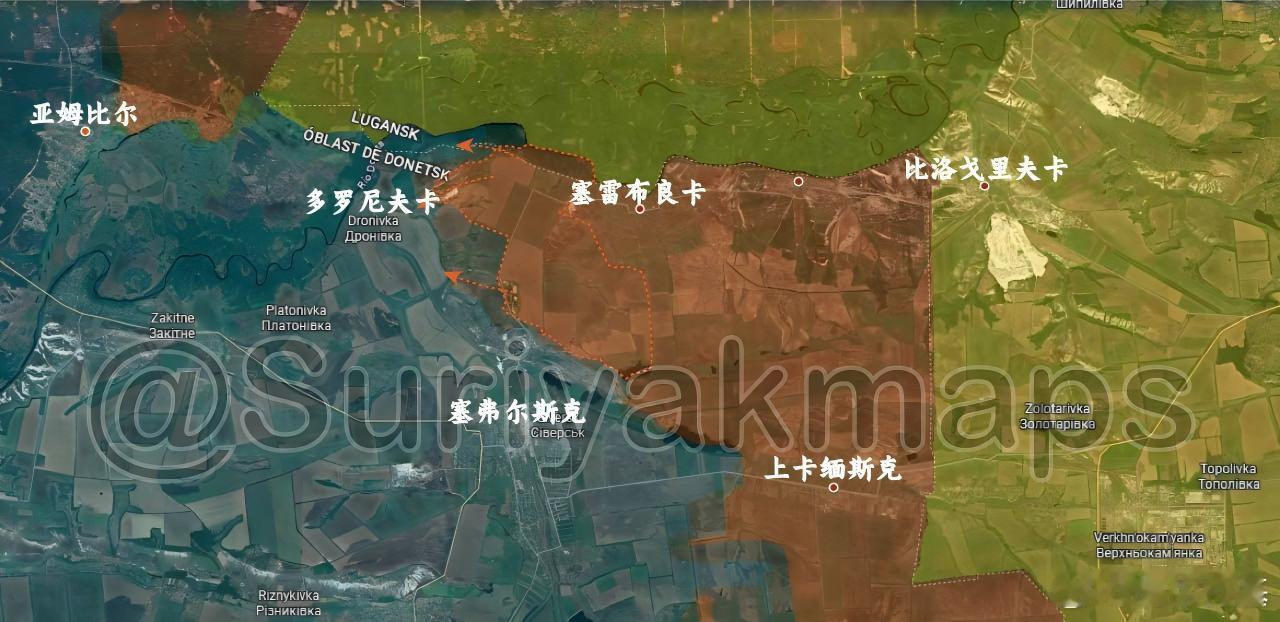3、塞弗尔斯克:俄罗斯军队占领塞雷布良卡森林以南的战壕,以及亚姆斯科耶白云石矿 和塞弗尔斯克以北郊区。