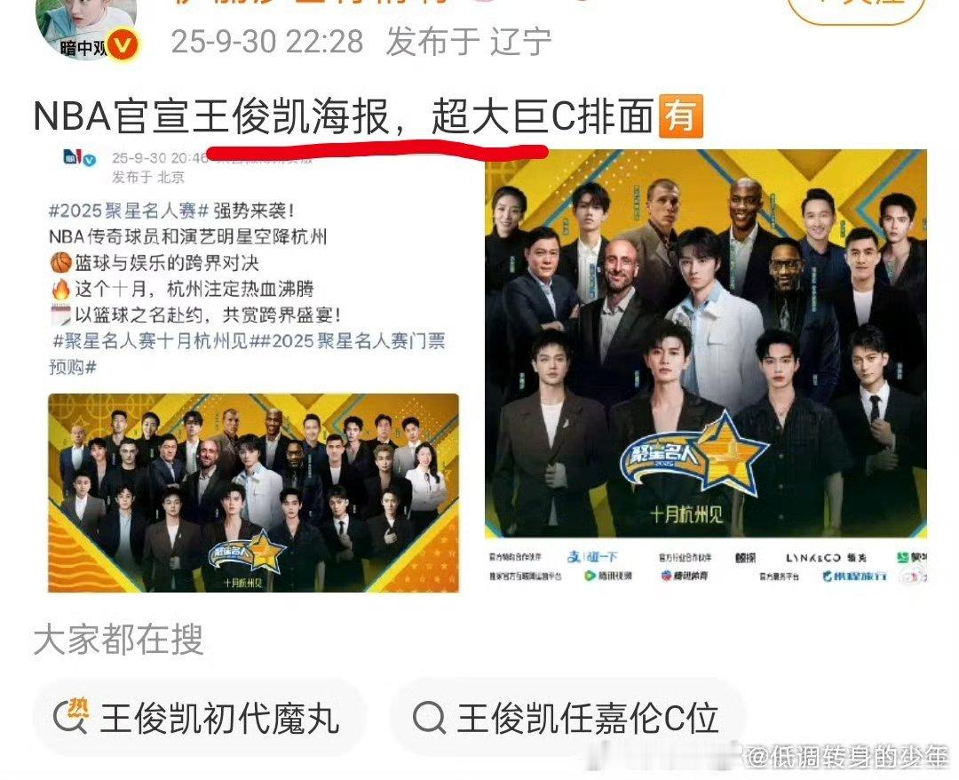 NBA官宣海报,超大巨C排面,这怎么看更合理,王俊凯和任嘉伦这是双c位?