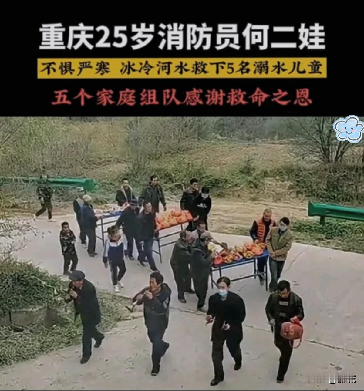 五个家庭为何会在一个寻常的午后,集体跪倒在消防站门口? 这一切,都要从江心那个即将被吞噬的小黑点说起—— 寒冬的嘉陵江水刺骨湍急,一名25岁的重庆消防员却毫不犹豫地纵身跃入激流。在生死一线的瞬间,他用自己的血肉之躯筑起生命之桥,成功将五名被困儿童托举回岸边。事后,五个家庭的父母携着锦旗与泪水,辗转寻到消防站——没有锣鼓喧天的排场,但那双布满老茧的手被紧紧握住时,他值得所有的鲜花与敬礼。 这让我想起2015年天津港爆炸中逆火而行的消防员,想起长江客轮倾覆时用肩膀扛起生命通道的迷彩身影。据统计,中国应急管理系统每年平均有超300名救援人员因公伤亡,他们用生命践行着"人民至上"的誓言。 网友说:"不慕流量明星,只敬人民子弟兵",这句话背后藏着深刻的社会价值转向。当娱乐偶像人设频频崩塌时,这群沉默的守护者始终以山河为卷,以热血为墨,在灾难现场书写着最动人的史诗。 英雄名叫何二娃——这个带着巴渝烟火气的名字,此刻已化作城市记忆的丰碑。若我们的时代需要信仰图腾,那一定是逆流而上的橙色身影,是千万个为何二娃们闪烁的泪光。建议相关部门破格晋升,让忠诚与勇毅在制度关怀中星火相传!