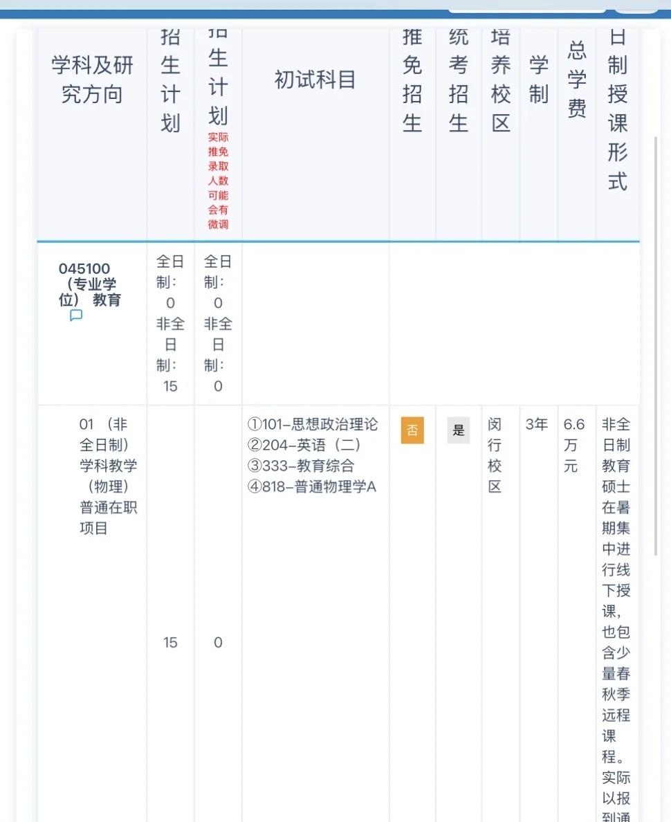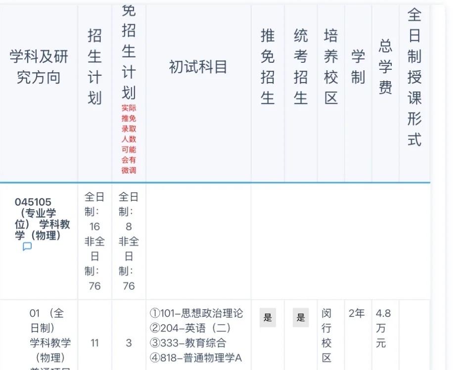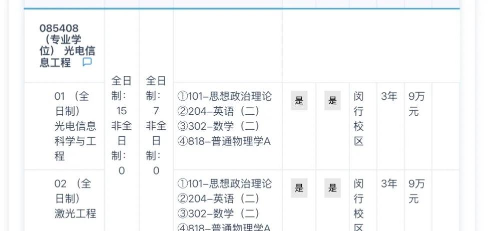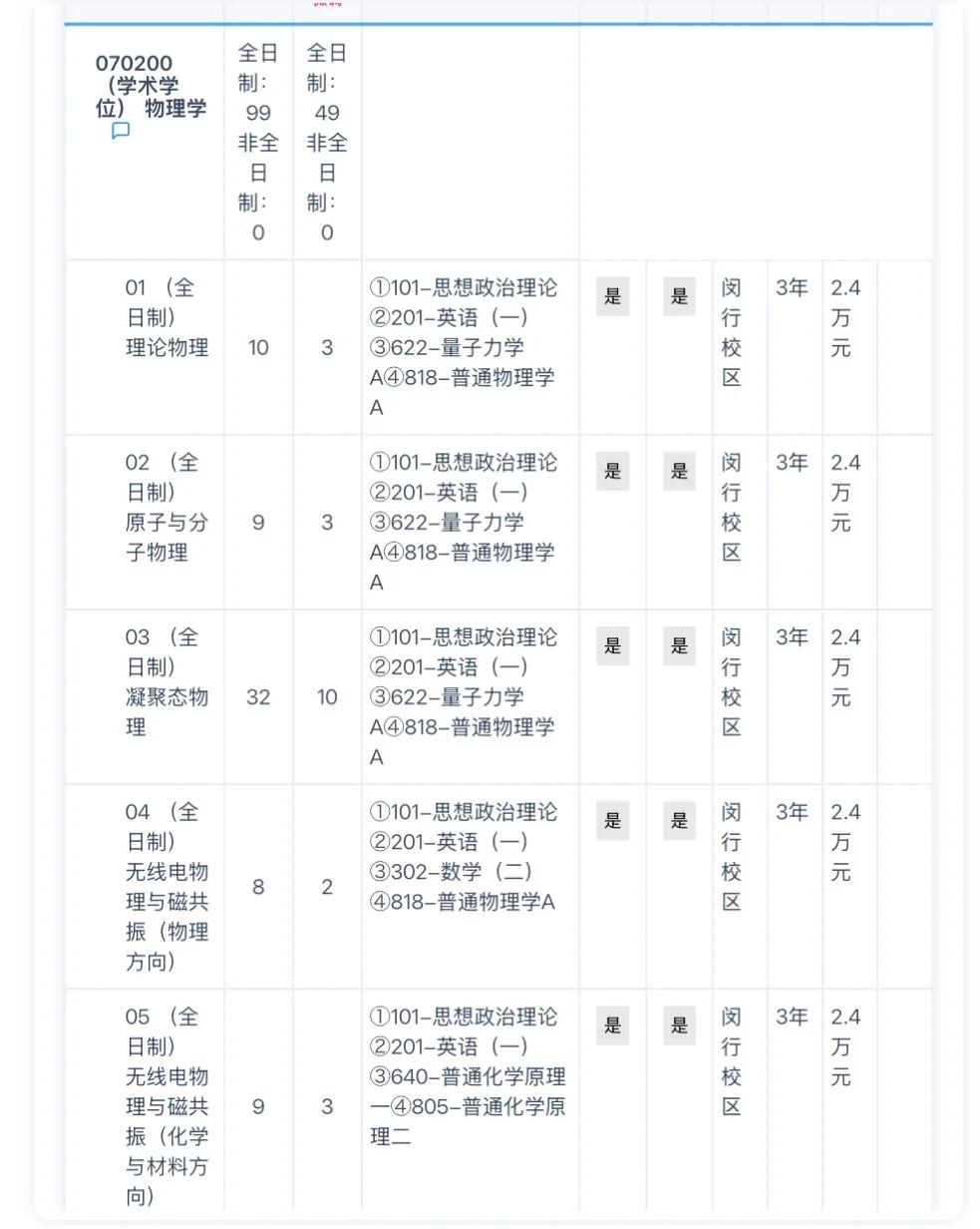 2026年华东师范大学招生目录出来了! 物理与电子科学学院:(都包含推免) 理论物理招生人数10,对比去年不变; 原子与分子物理招生人数9,对比去年不变; 凝聚态物理招生人数32,对比去年不变; 无线电物理(物理方向)招生人数8,对比去年不变; 物理课程与教学招生人数2,对比去年不变; 学科物理(全日制)招生人数11,对比去年不变; 学科物理(非全日制)招生人数15,对比去年多3人; 新增专业量子物理招生人数20人; 先进仪器技术与应用招生人数18,今年改考了普物818; 精密光谱科学与技术高等研究院: 光学招生人数55,去年招生68,缩招了13人,要考光学的同学注意一下; 光电信息工程招生人数15人,激光工程合并进去,去年一共招生24人,缩招了9人,报考这个方向的同学也留意一下! 汤圆哥建议:物理与电子科学学院物理方向的名额变化不大,考纲也没有变化,还新增加了一个专业,想冲一下的同学完全可以冲;光谱那边今年所有专业缩招,备考光学的同学需要慎重考虑一下了!华东师范大学物理学考研 华东师范大学考研 物理学考研 考研院校专业推荐