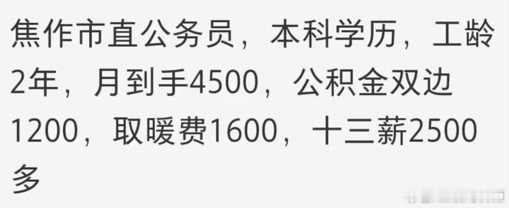 这个关于公务员待遇的情况比较真实,公务员工资不高,但足够生活,当然我说的是在三四线城市。如果在大城市生活,公务员的收入还是比较紧张的。所以我一直认为,在三四五线城市,公务员群体的幸福感应该是极高的。