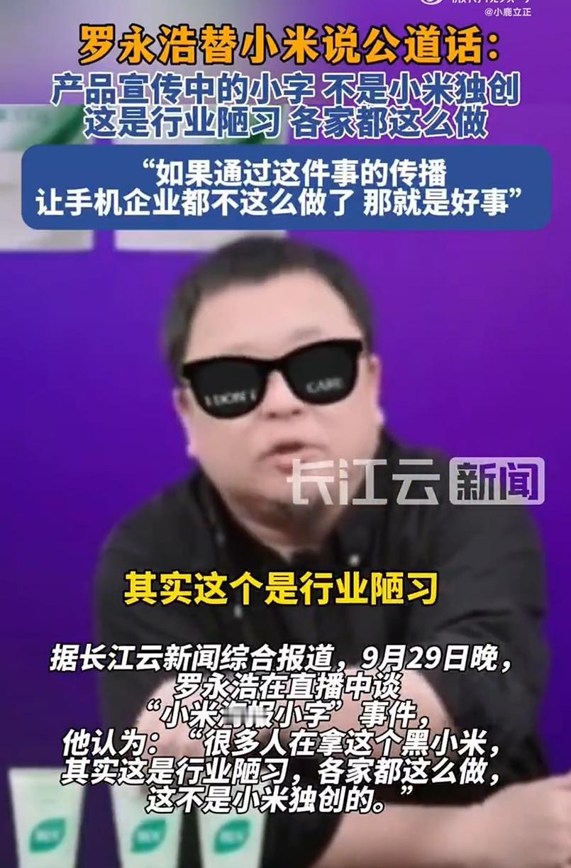 看到小米广告的“小字注释”, 终于明白了, 为什么西贝用预制菜被人诟病, 就是因为西贝太老实了,别人都在变个法刷文字游戏,而老贾就坚持黑就是黑,白就是白。 有网友给西贝支个招,他们在招牌里应该大字说“绝对没有预制菜”,然后再小字“没有预制菜是我们的目标”,这不是一句玩笑,老罗在直播间里也说过,这是行业陋习,几乎全行业都在这样做,为什么西贝不这样做,即宣传了产品特点,又规避了广告风险。 其实“小字注释”已经在广告圈流行多年,今天能够被大家关注也是一个好事,起码大家开始懂得,即使是大公司的宣传吗,都不能当真,仔细看小字的免责声明才是精明,其次就是这事广泛传播后,也有利于推动立法部门的关注和改进。