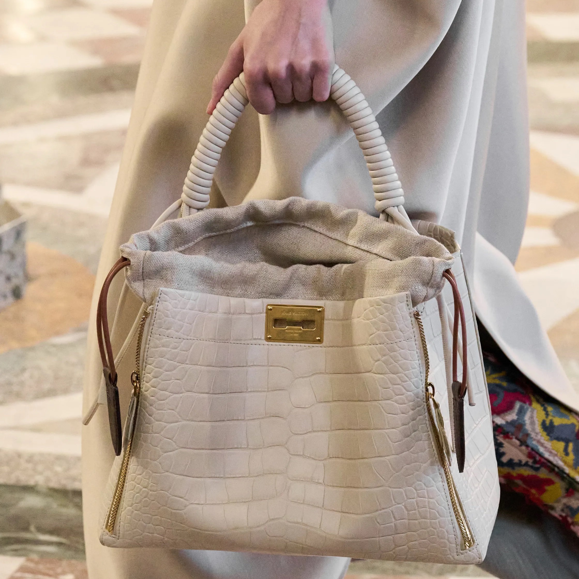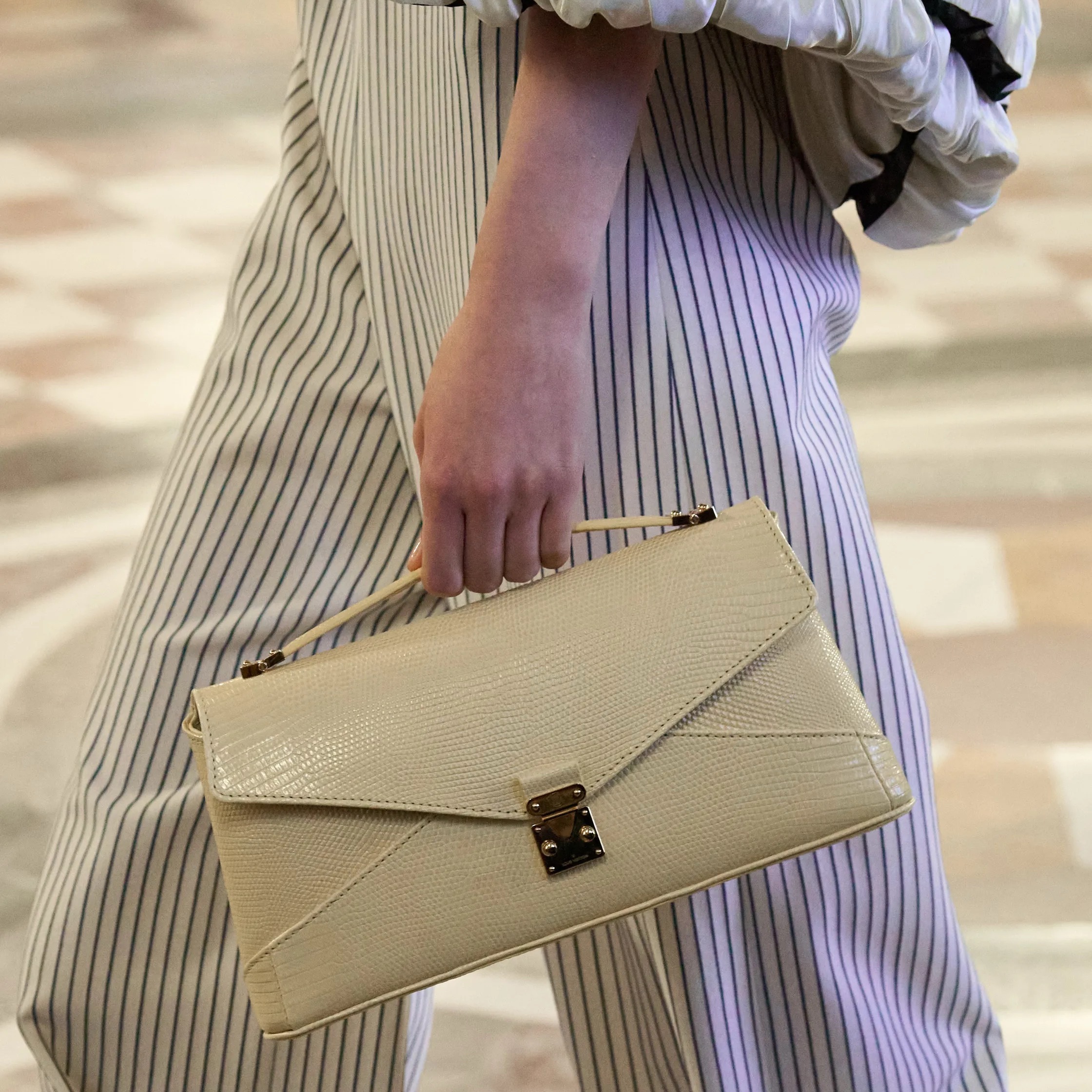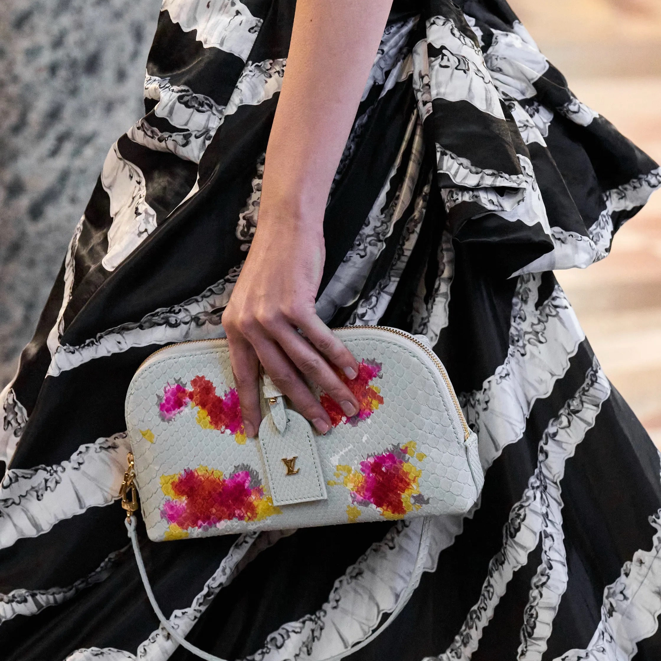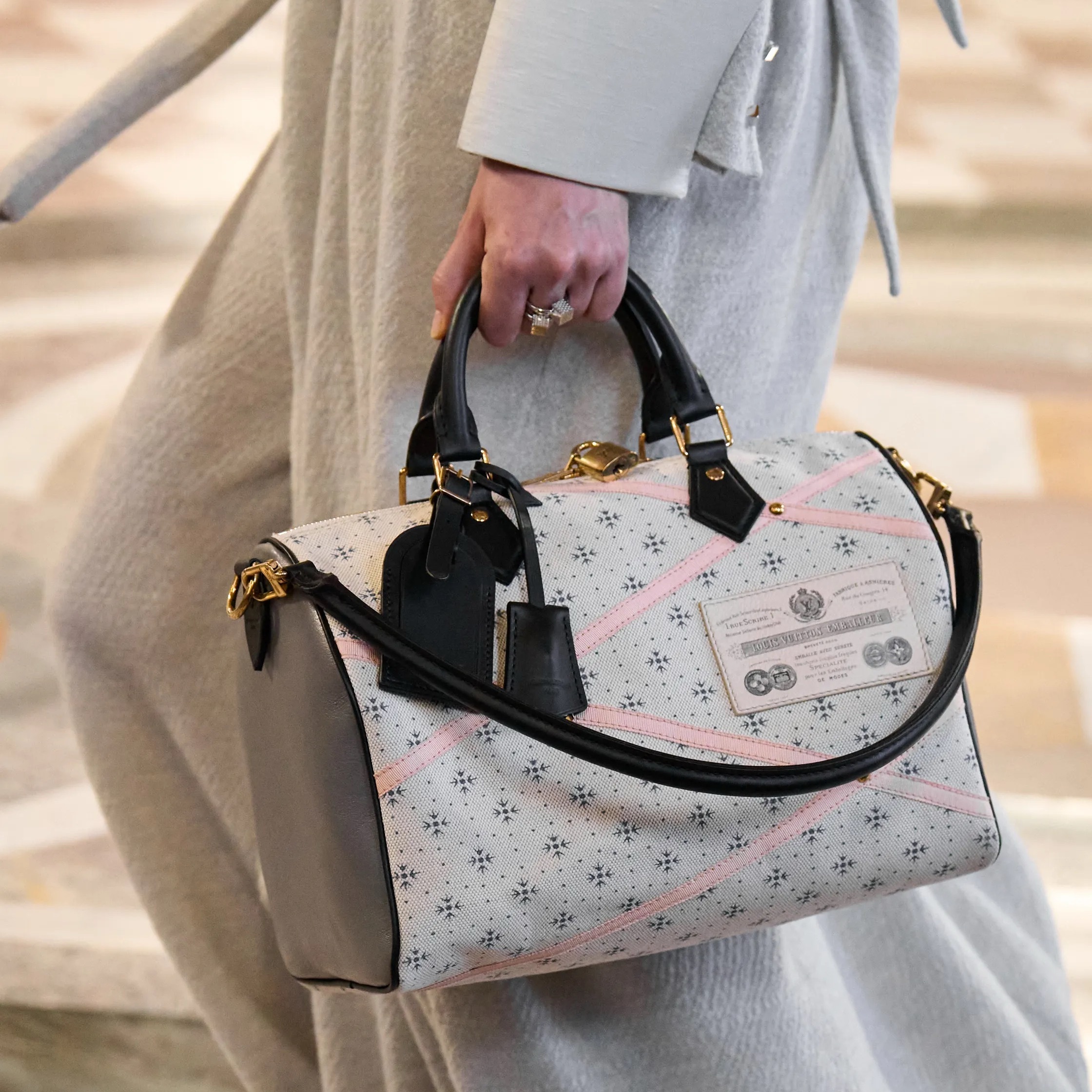 LV春夏26女装秀中,包袋依旧是不可忽视的焦点。Nicolas Ghesquière 将“家的温度”融入配饰设计:有的仿佛以柔软墙布为灵感,运用提花或丝绒质地,散发温润触感。