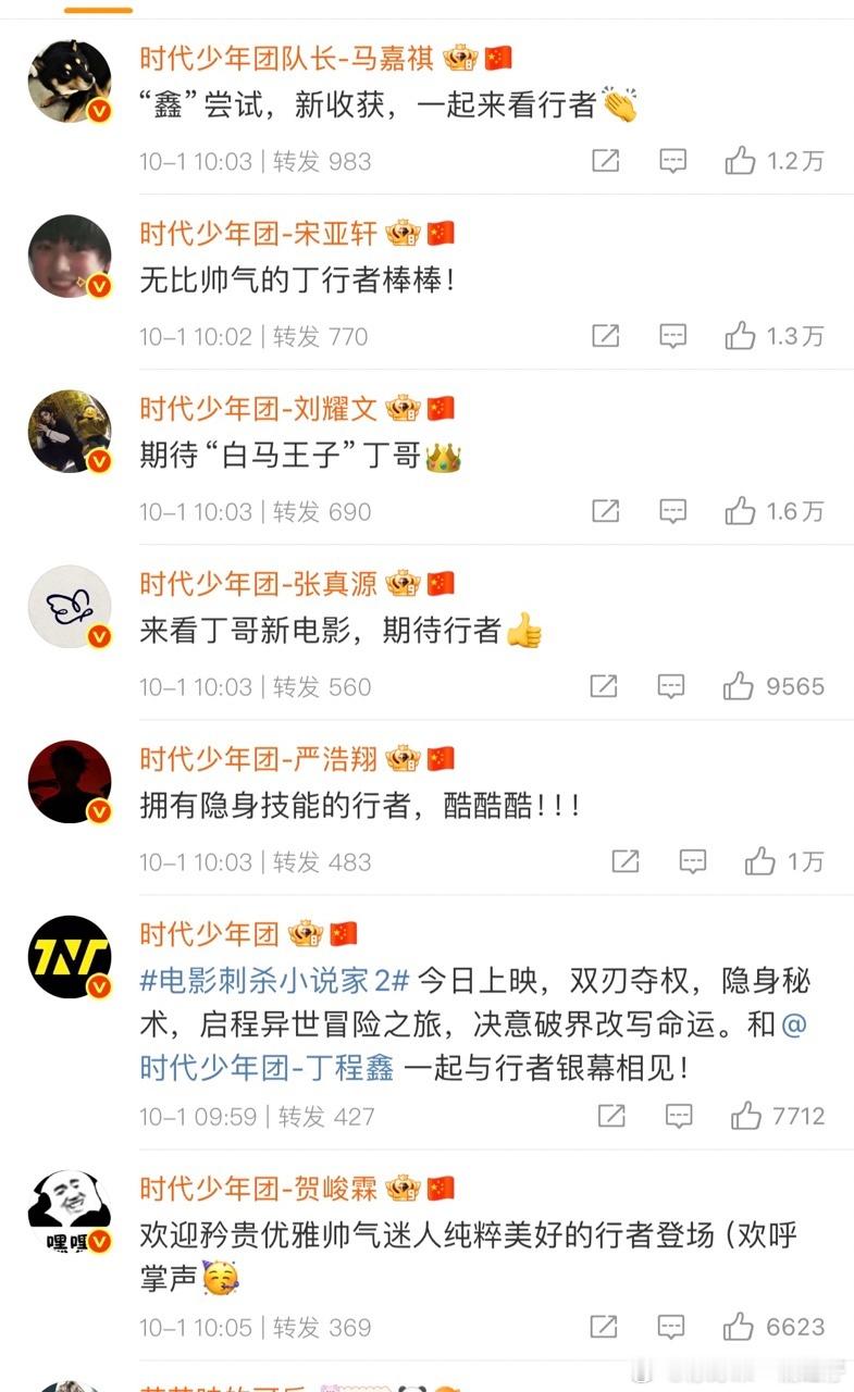 丁程鑫[超话]时代少年团给丁程鑫新片打call时代少年团为刺杀小说家2打call