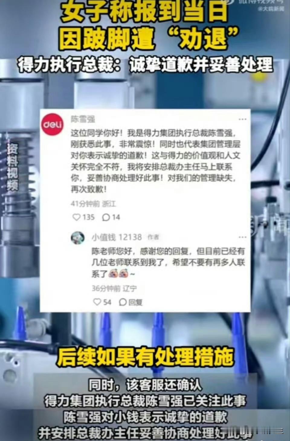 面试通关却输给一条跛腿 一位姑娘通过得力集团三轮面试,却在报到当天因走路跛脚被