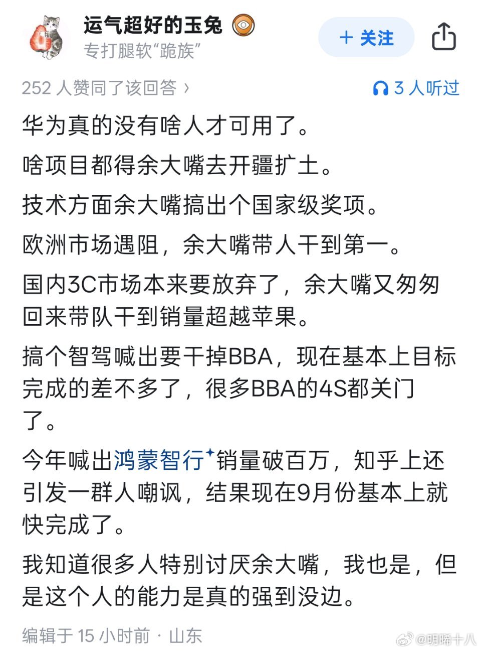 余承东确认厉害,给人一种干啥都能干成的感觉。