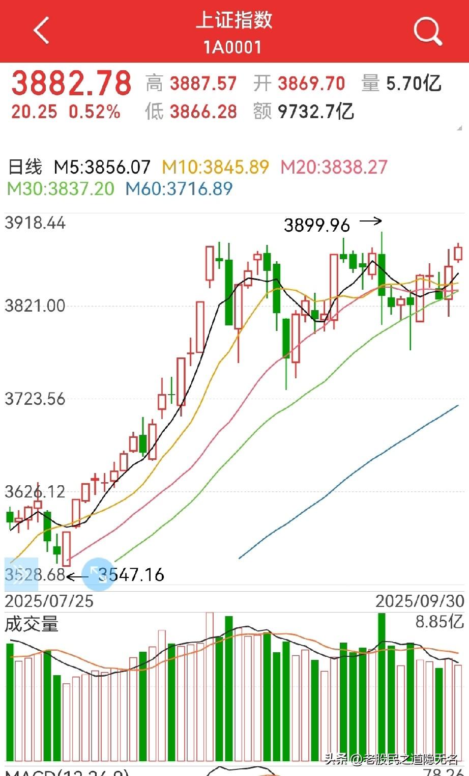 十月开门红? 有几大利好支撑,比如: 1,“十五.五”规划,这里面除了总的规划,证.监.会的部门规划也更加的开放、规范… 而会议时间是10.20日起,十月开盘只有七个交易日就到,这个“空档期”正是朦胧期盼期。 2,央.妈的1.1万亿水又放出来了。 虽然美联储降息后我们没有降息、降准,但“钱没少给”。 3,券商板块第三季度的业绩不管同比环比,估计都非常亮眼,包括其调整的到位及一系列综合的利好。 所以,本周一的上涨,肯定不会是虚晃一枪! 4,节前虽然没有站上3900点,但两根阳线还是给人无限暇想,但凡节日期间有一些利好,十月开盘,3900点只是小事,重要的是,长假的酝酿,场外资金摩拳擦掌肯定不会少。 当然,有了去年“10.8”日的教训,“大兄弟”今年明显更有分寸,给新入场资金留有余地。 个人认为,200~300点的空间是有。 十月只有17个交易日,除了“十五.五”的期待,还有月底美联储的议息。 所以,整个十月,是值得期待的。