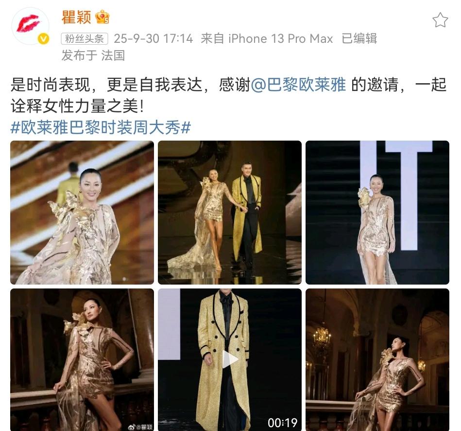 瞿颖亮相欧莱雅巴黎时装周大秀,被她那金光闪闪的样子美晕了…… 这是一种时尚表现