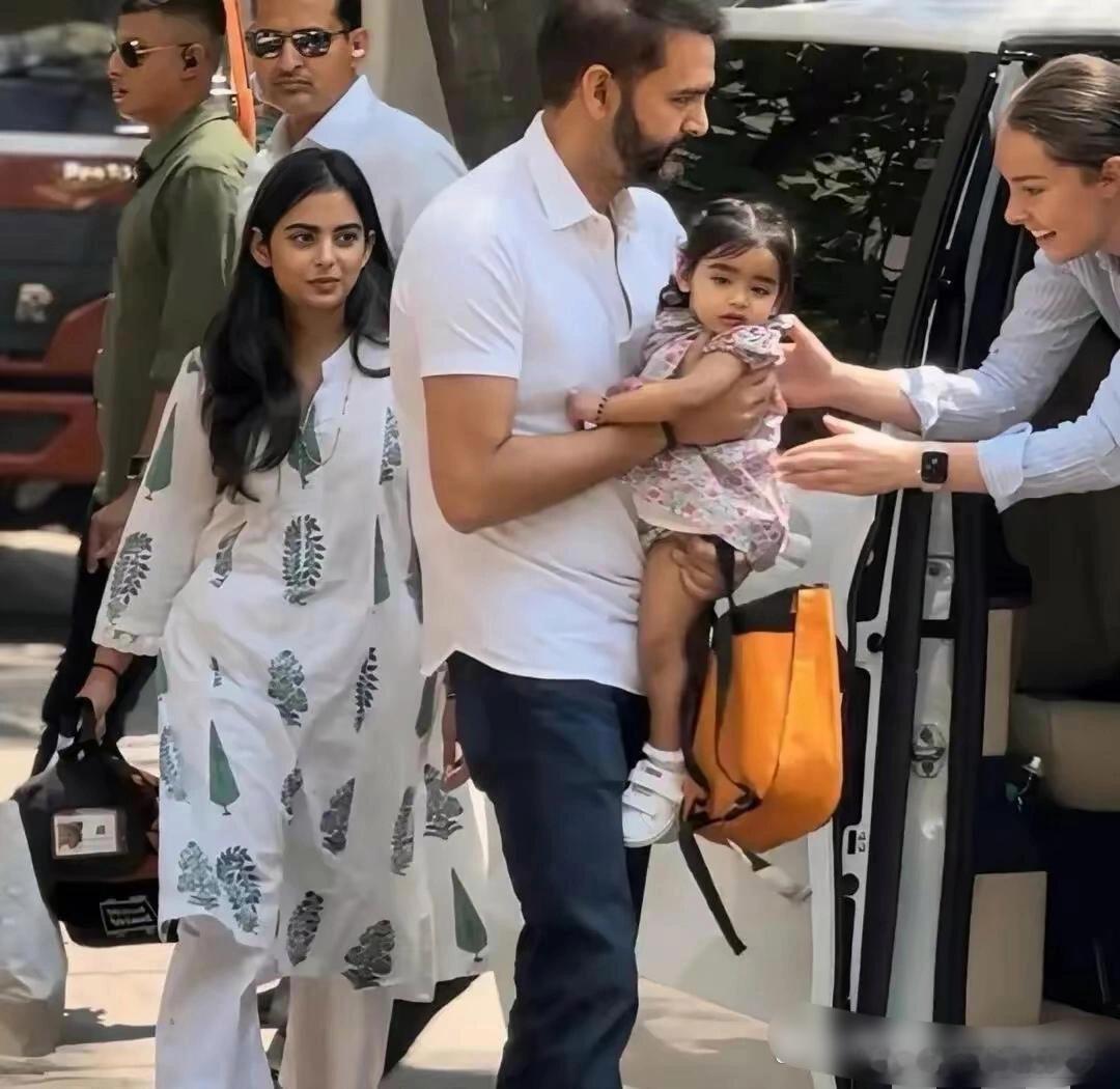 印度首富唯一的宝贝女儿,从来不化妆,就是素颜也不输女明星。和老公带女儿出行,保镖保姆一应俱全