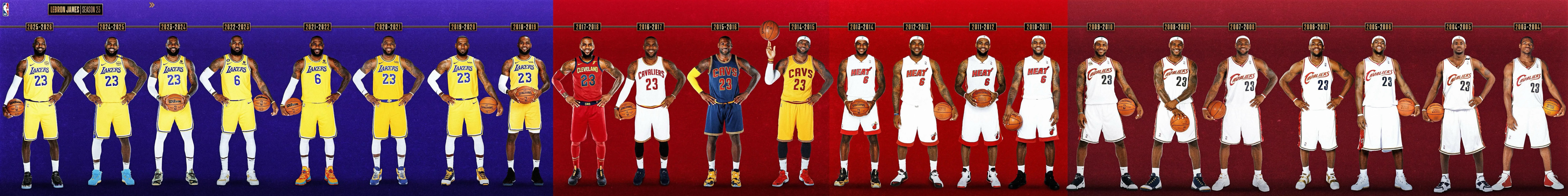 NBA官方ins晒出詹姆斯生涯历年定妆照: