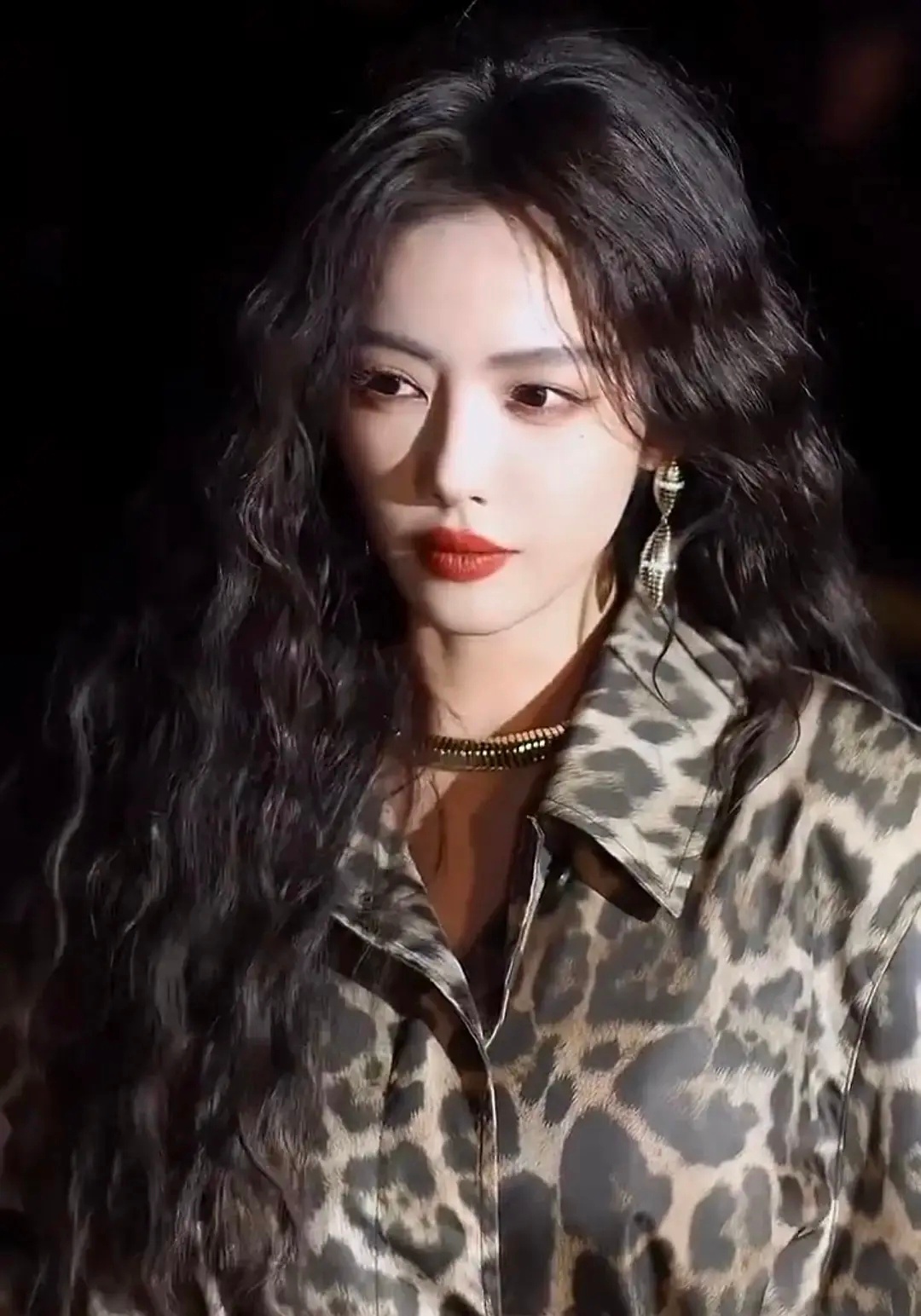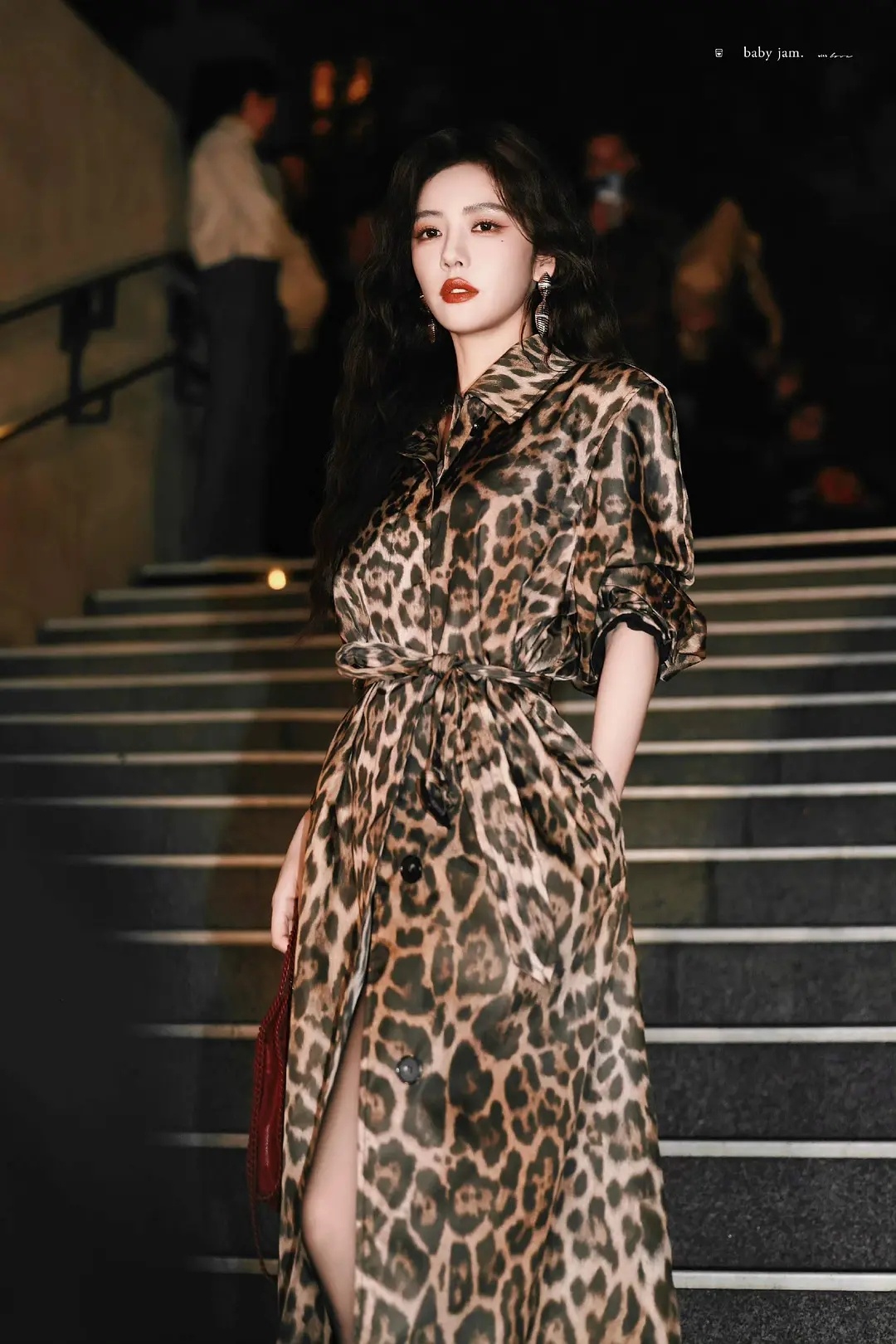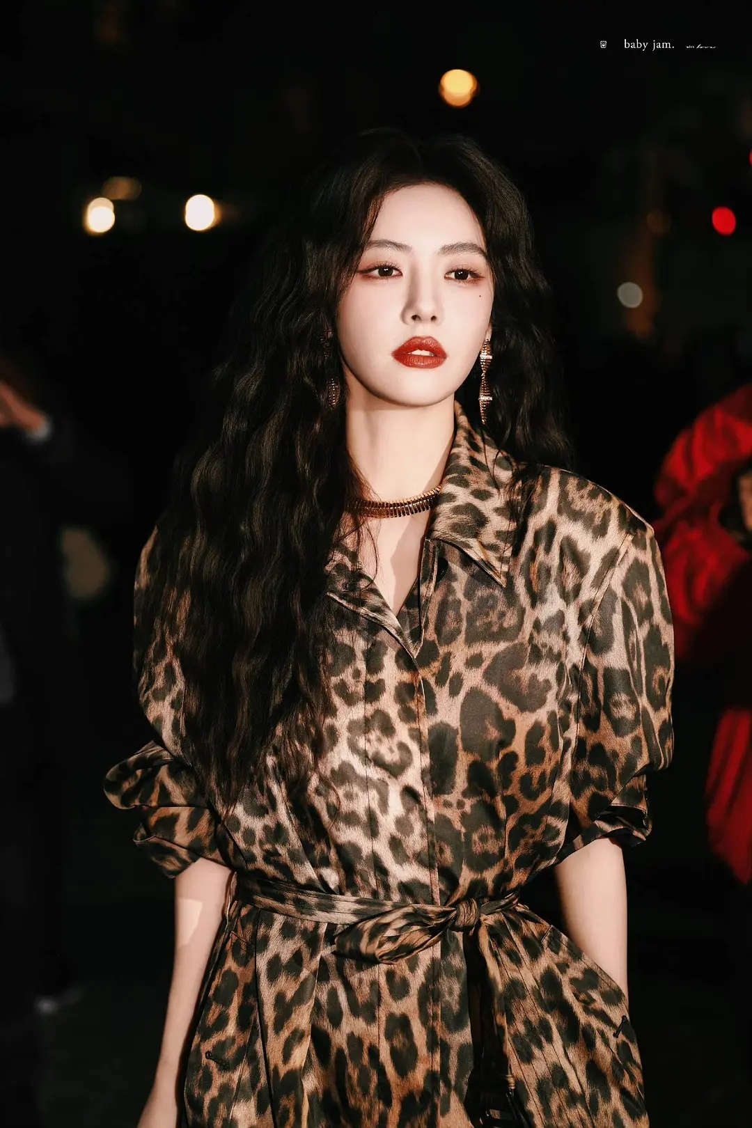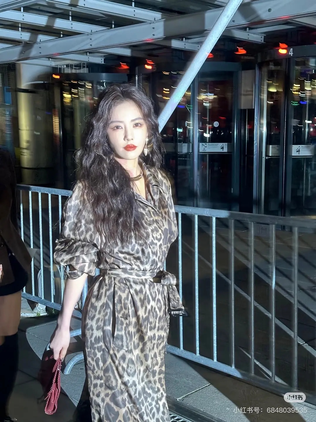 蔡文静今日巴黎时装周如何豹纹卷发🐆