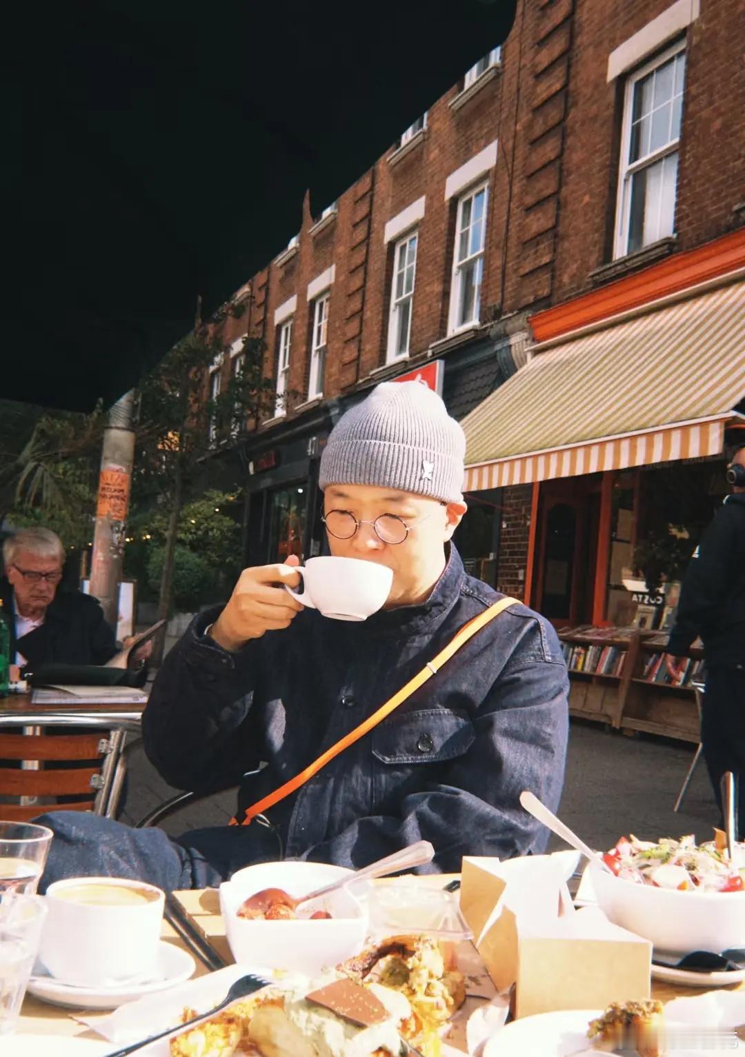 杜海涛现身英国伦敦读语言学校,一个人坐在路边餐桌上吃大餐,手里拿着杯子喝茶,非常的休闲自在。