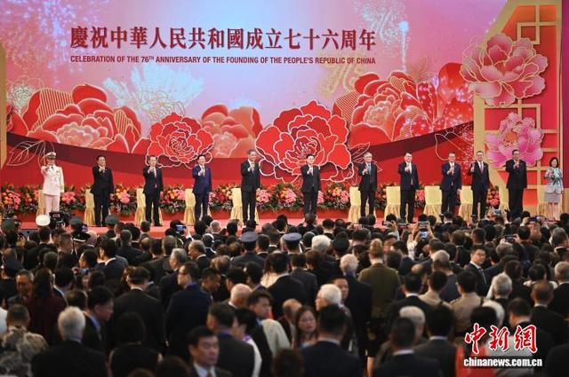 10月1日,香港特区政府在香港会议展览中心举办国庆酒会,庆祝中华人民共和国成立76周年。中新社记者李志华摄