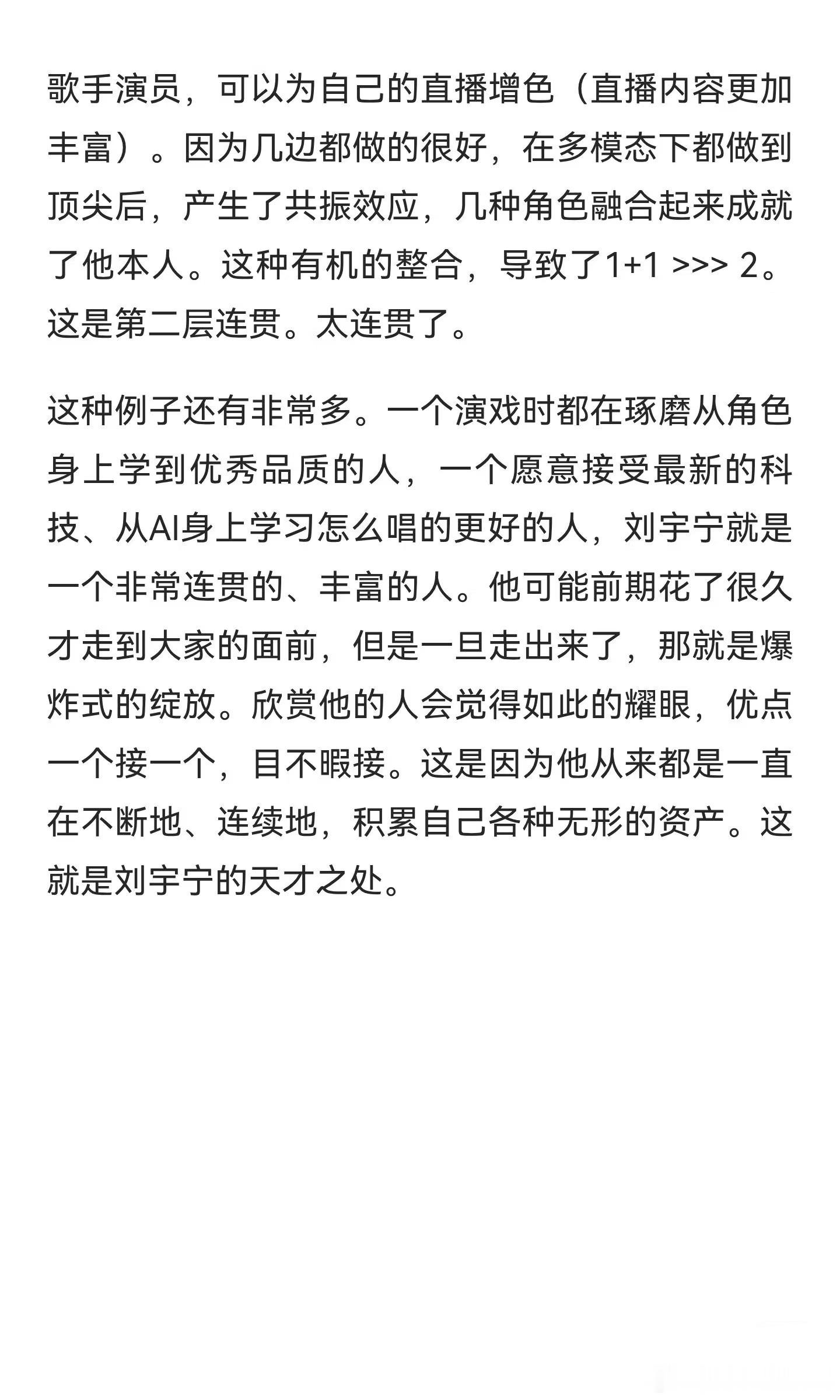 这是因为他从来都是一直在不断地、连续地,积累自己各种无形的资产。这就是刘宇宁的天才之处。👏👏