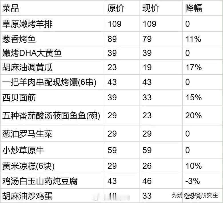 西贝降价了,可老顾客心里还是没底。 10月1日起,西贝全国门店正式下调部分菜品