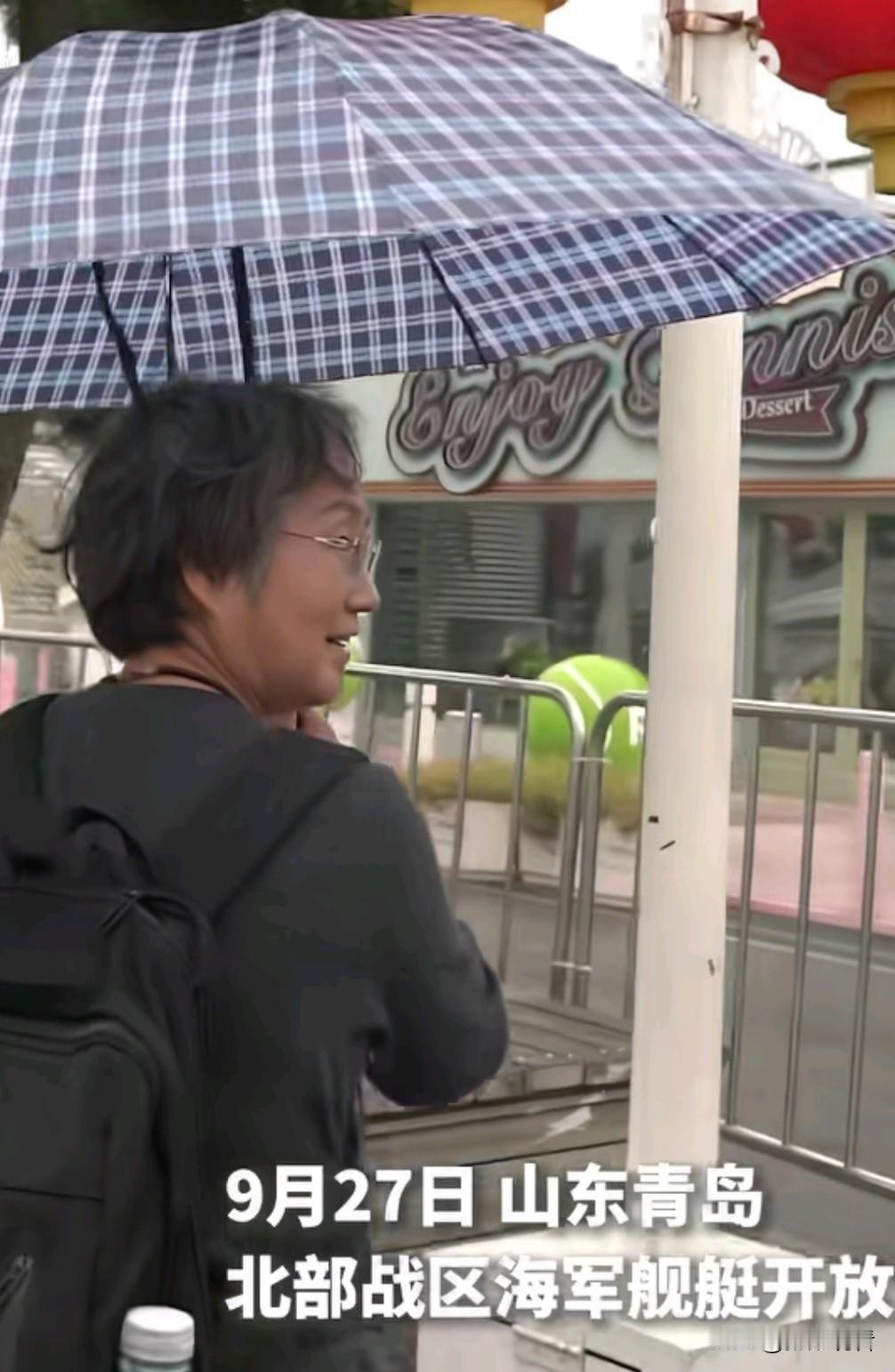 9月27日,青岛奥帆中心码头,青岛舰艇开放日,一位来自河南的母亲坐了一夜火车,只为远远看一眼在舰艇旁执勤的儿子。 我觉得战士母亲这一眼跨越千里山海!那句轻声的“看一眼就行了”,真的瞬间破防…… 她在人群中踮脚张望,还悄悄把伞举到儿子头顶,自己却淋着雨。 我觉得这一刻,最动人的不是威武的军舰,而是那把为儿子撑起的伞。最动人的风景,是母亲举着的那把伞,撑住的是儿子的制服,更是一辈子放不下的牵挂。 原来所谓“国泰民安”,就是有人守着大海,有人等着归人。