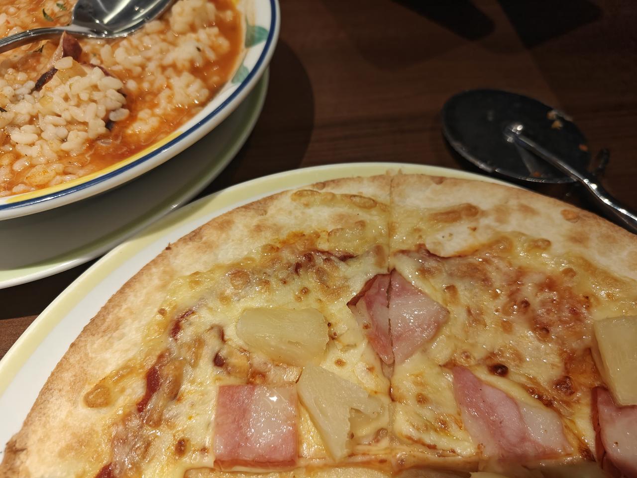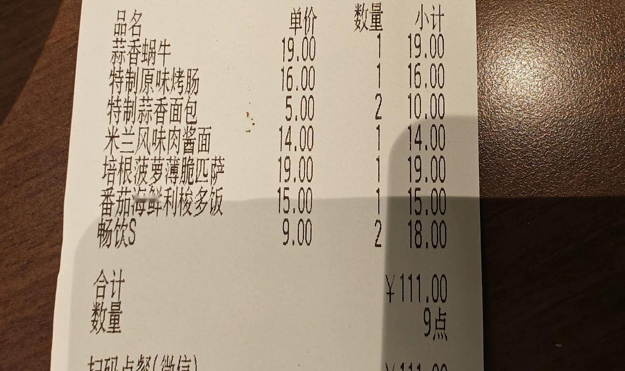 预制菜之萨莉亚餐厅。 西班牙海鲜饭,薄脆夏威夷披萨两份,米兰肉酱面,香蒜面包两