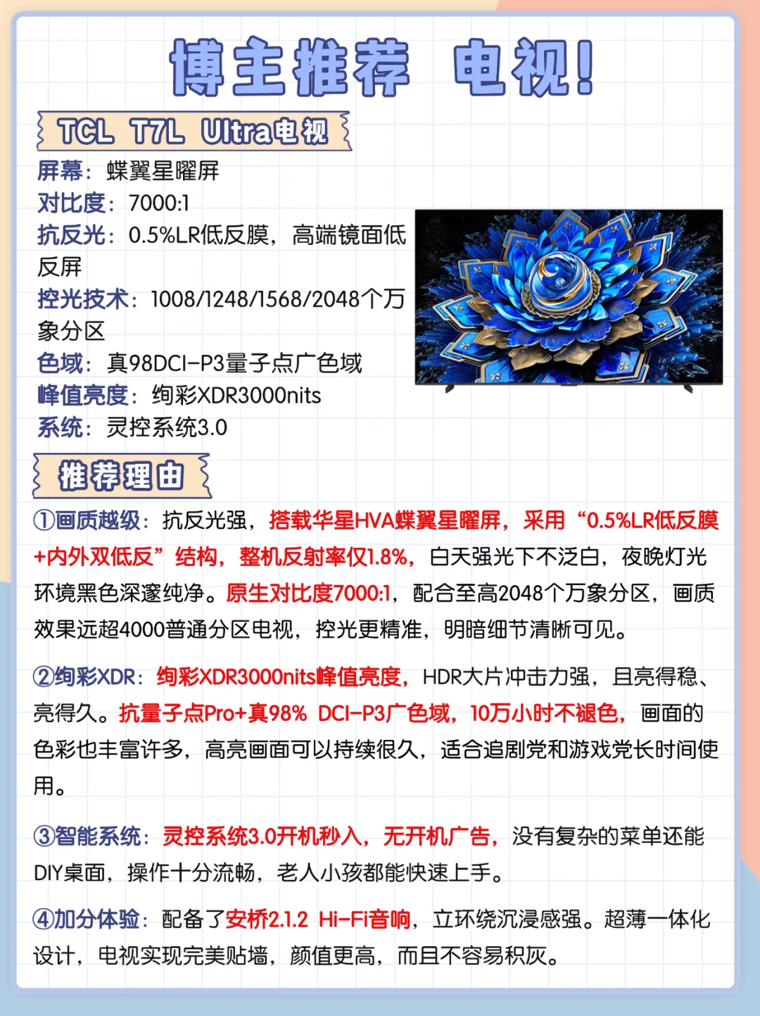 而如果你图省心,想一步到位,TCL T7L Ultra会是个靠谱的答案。