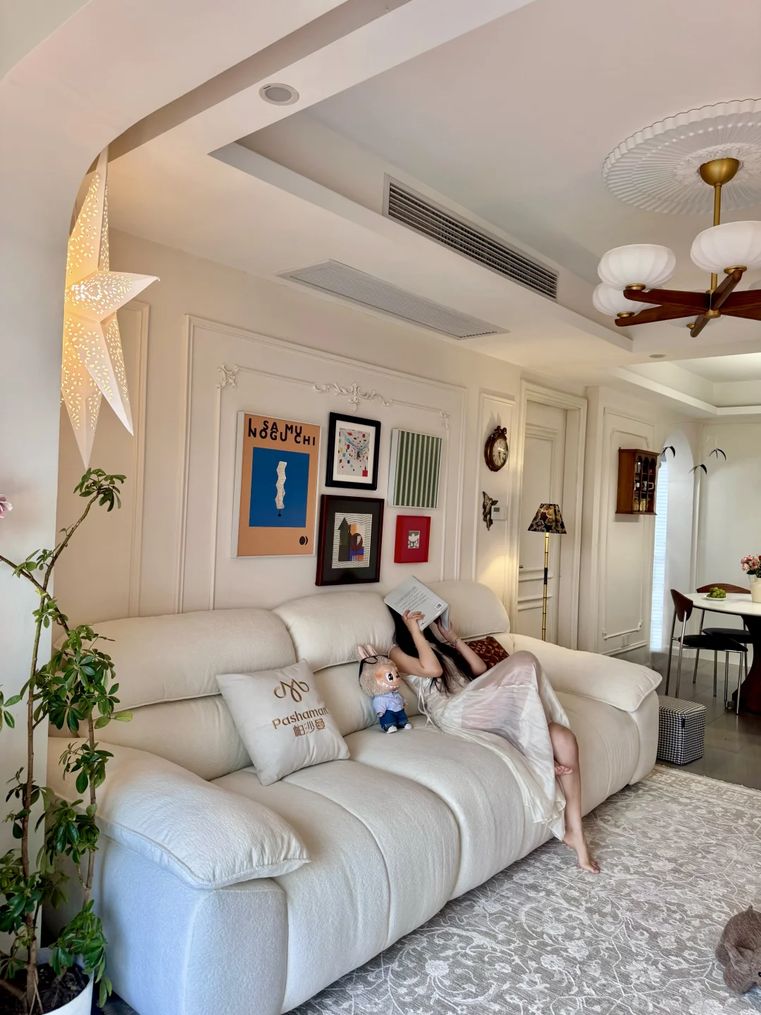 白沙发就怕脏,这个沙发的爽点是全身外套都能拆下来机洗! 我一个人就能搞定,拆下来扔洗衣机,洗完套回去就跟新的一样!再也不怕咖啡渍、猫毛、小朋友的手印了,“反正能洗”成了我的口头禅,彻底告别清洁焦虑!