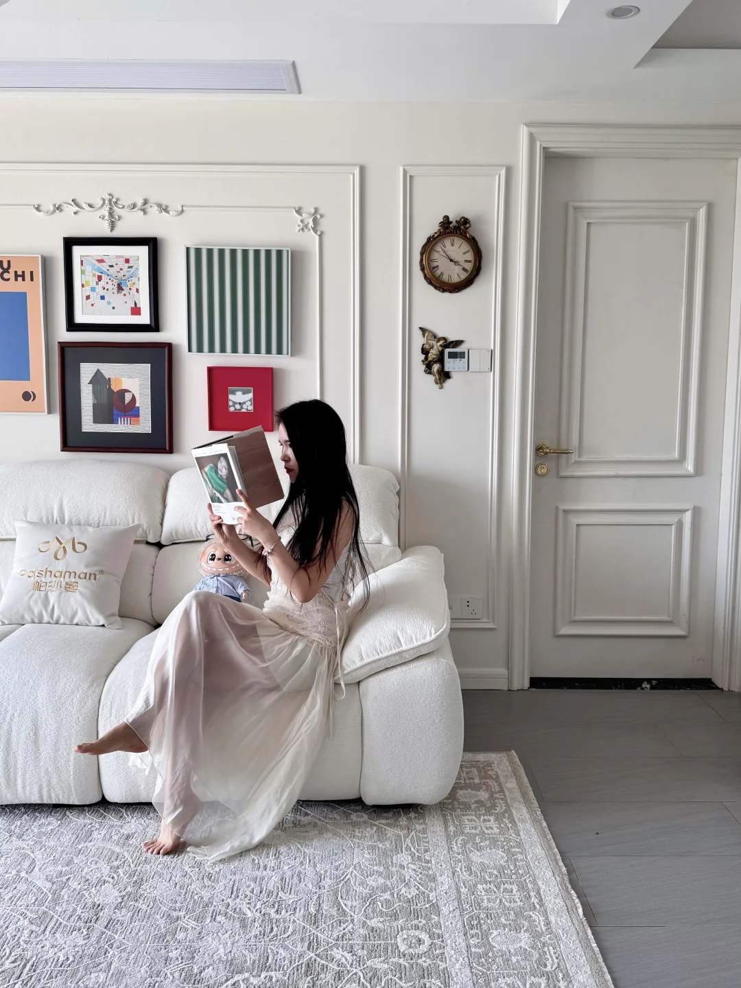 客厅放的是2.8米长的帕沙曼大白熊沙发🐻
