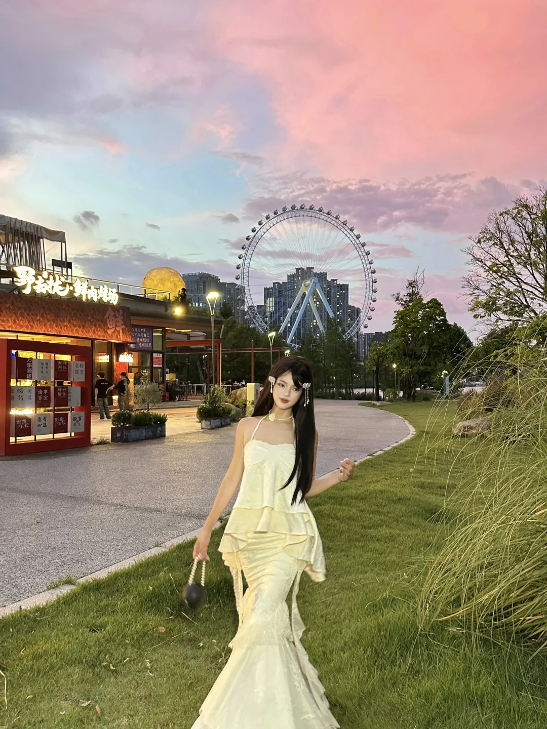 坐在露营椅上听着歌、看着摩天轮夜景🌃