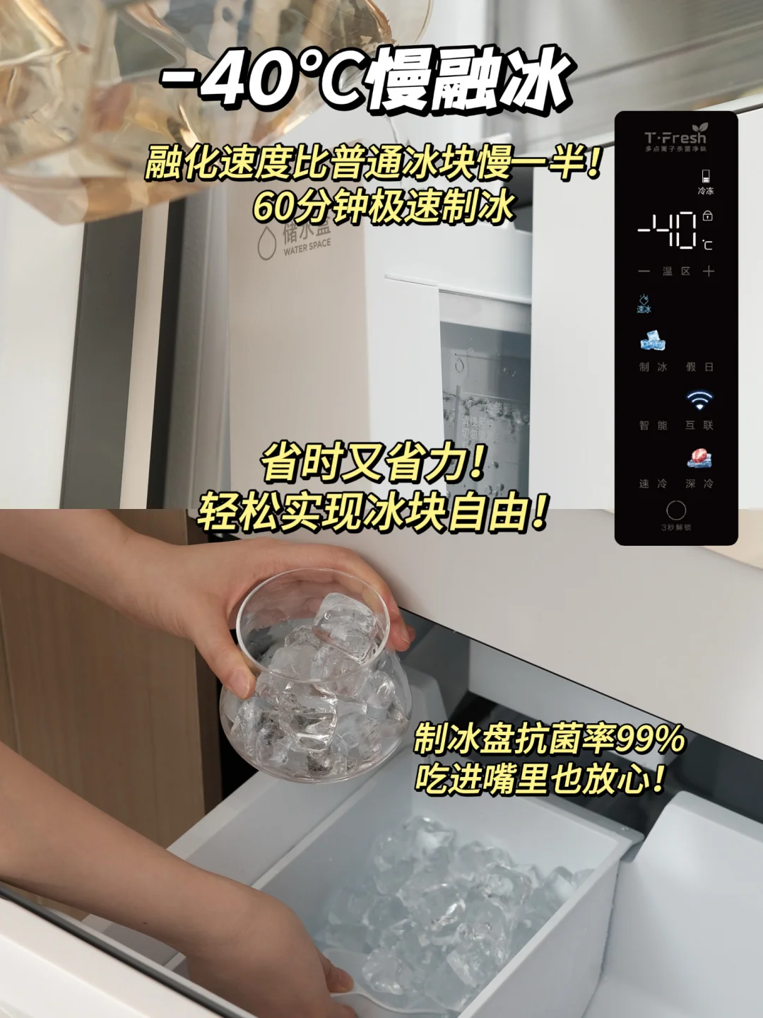 首先必须夸夸它的-40℃慢融冰!喝威士忌、气泡酒最讲究冰块的口感,这冰厚实得很,融化速度比普通冰块慢50%🥃 慢慢喝到最后一口,酒还是原汁原味的浓郁,再也不用喝到一半变成“掺水酒”了,微醺的快乐直接拉满!关键它还能60分钟极速制冰,满冰能有170块🧊,不管是朋友突然来小聚,还是自己想喝,冰块都随取随用。而且制冰盘抗🦠率99%,冰块干净卫生,入口更安心~