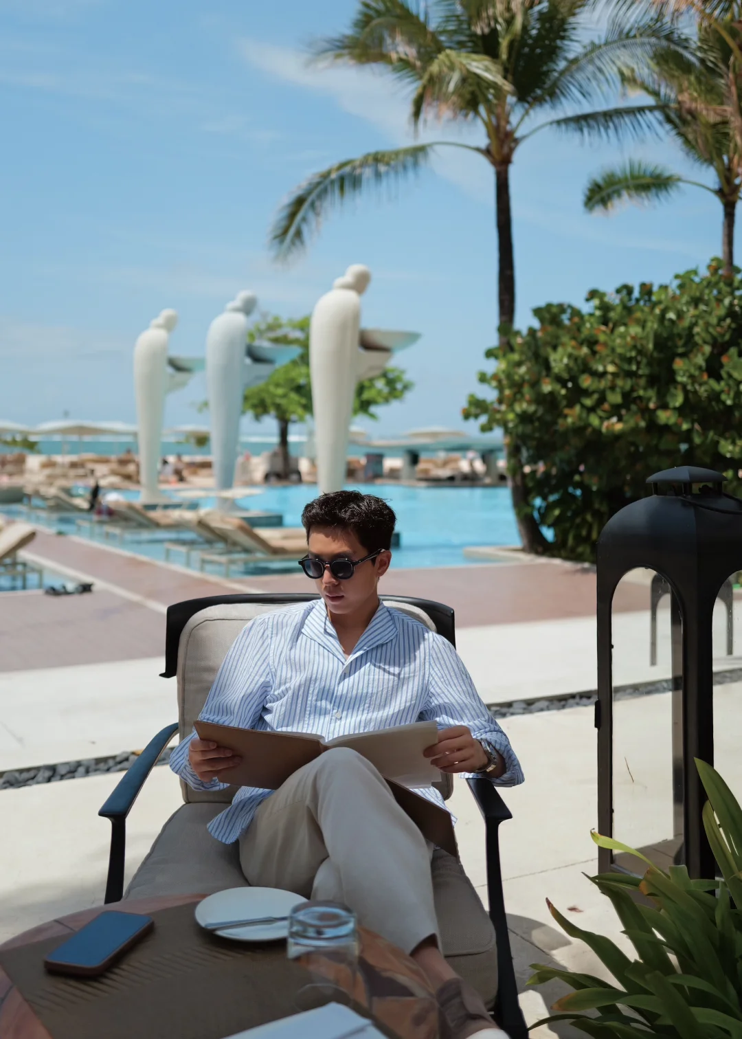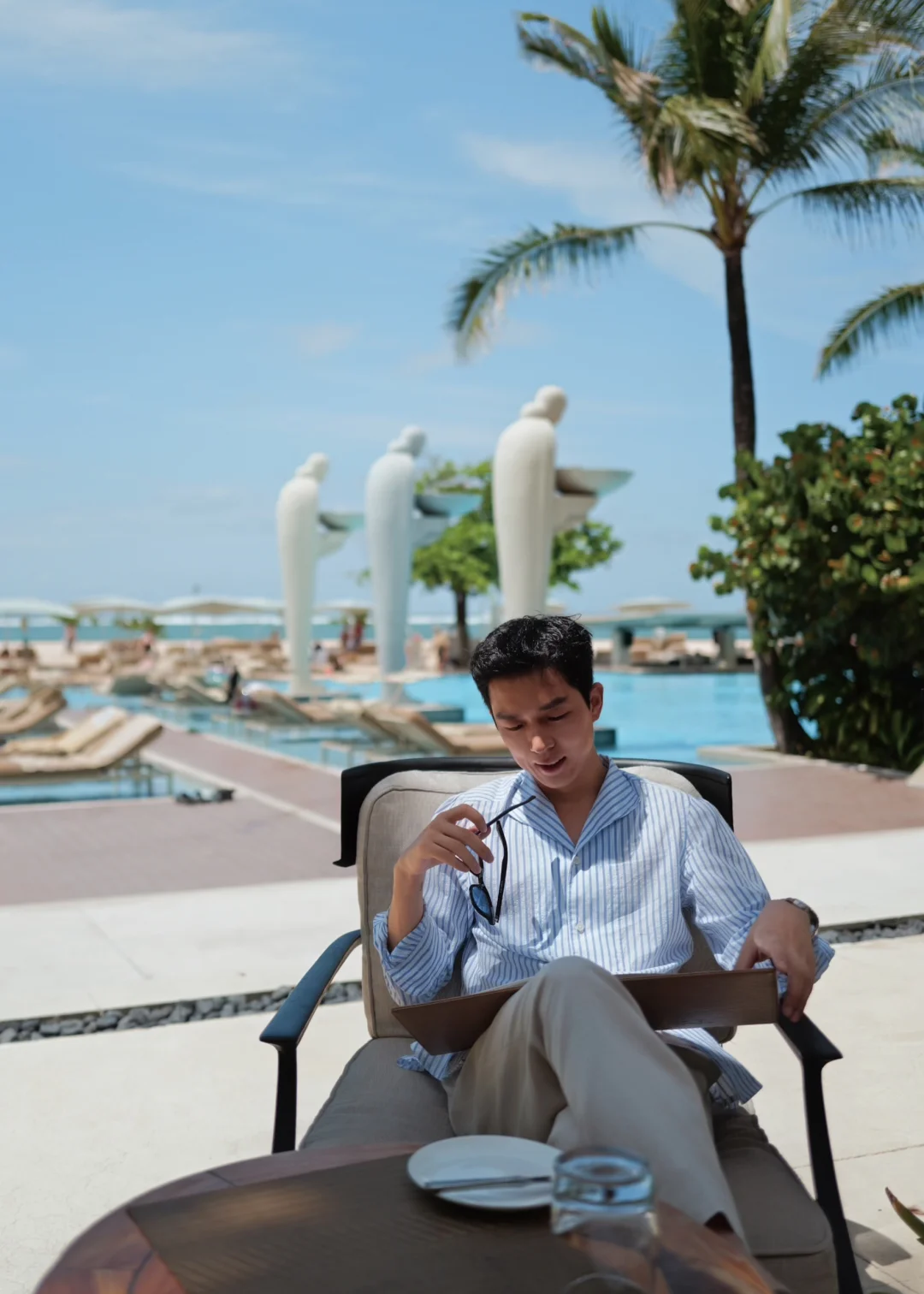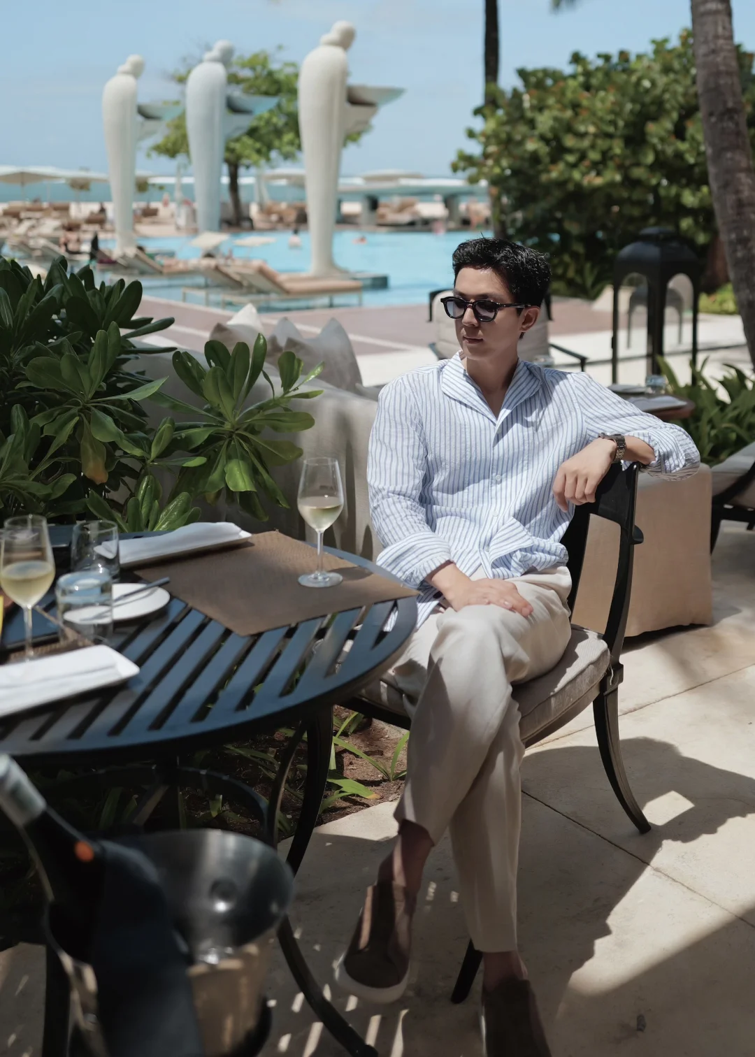而我呢?飞来飞去、拍照、写稿,偶尔才能在安静的一刻真正放空。这次也努力放慢了一点节奏:在沙滩边的泳池坐了一下午,点了一杯冰镇白葡萄酒,看海浪起伏;一大早起床去打网球,在阳光下流汗的那一刻,我突然觉得——这才是真正属于我自己的度假。