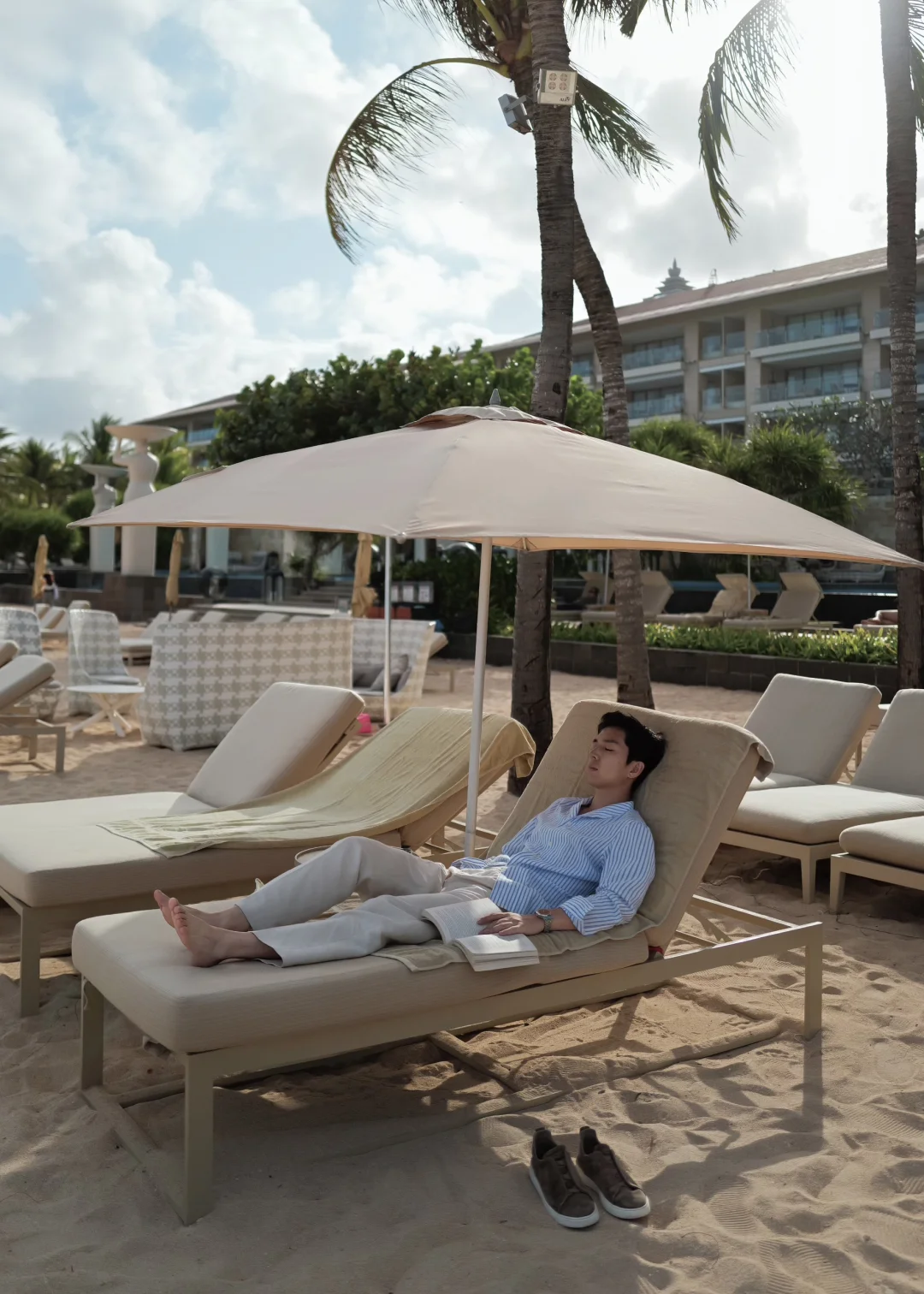 我看到不少“老钱式”的松弛感:他们不会急着打卡景点,不在意有没有拍到大片,甚至很少拿手机,更多是静静地阅读、喝一杯、散步,把日常搬到海边。他们的“度假”,不是一场旅行,而是一种长期习惯。