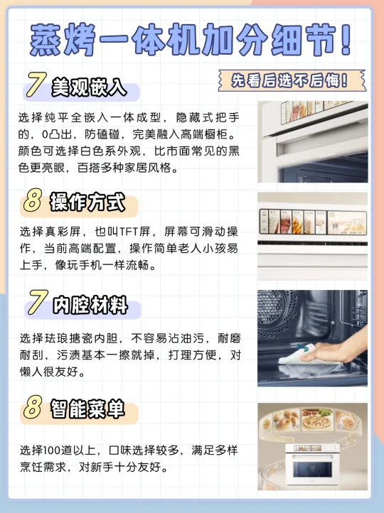 嵌入式蒸烤一体机选购加分细节,抓好细节,家用体验更棒。