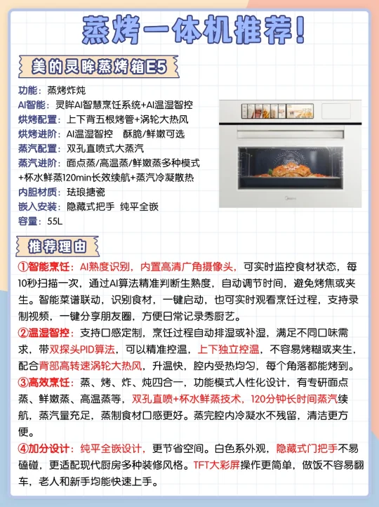 博主推荐,美的灵眸蒸烤箱E5,性能均衡、体验非常不错的产品。