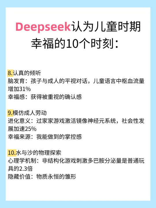 当我问DeepSeek“童年幸福的10个瞬间”是什么?