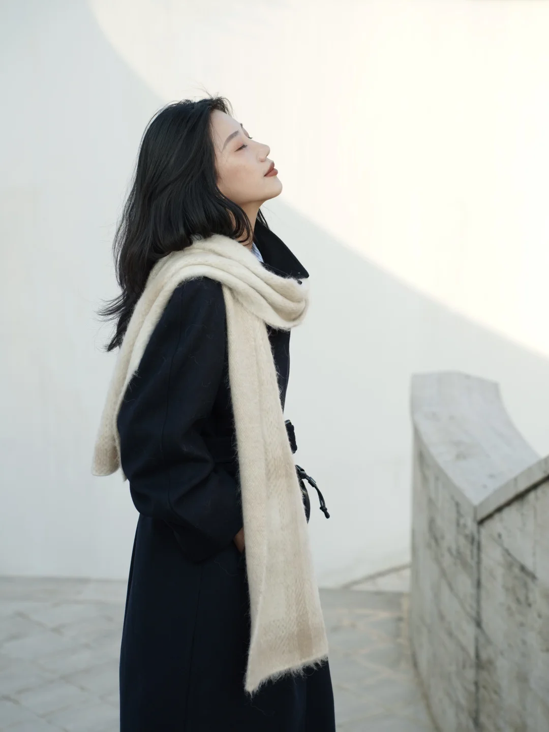 最后从抽屉里取出那条燕麦色羊绒围巾,